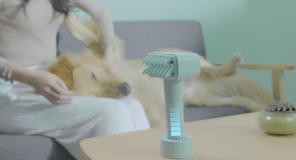 そこで香港の企業が開発したのが「Kcomb」。一見普通のブラシのようにも見えるが、電気で動くペット専用の電動ブラシだ。