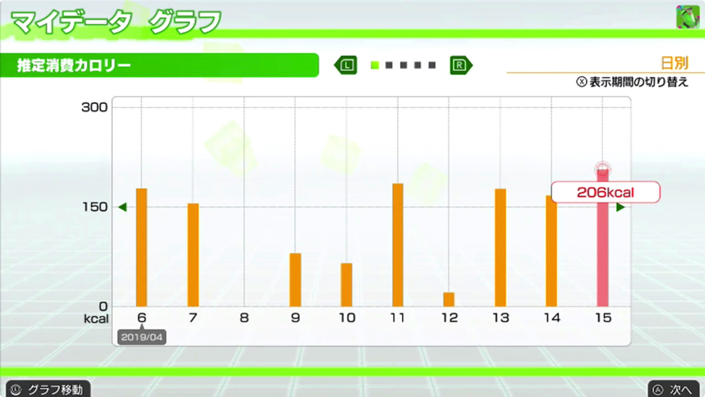 毎日のカロリー消費量や、パンチの数、体年齢などが記録されるので、データを見返すだけでもモチベになります。