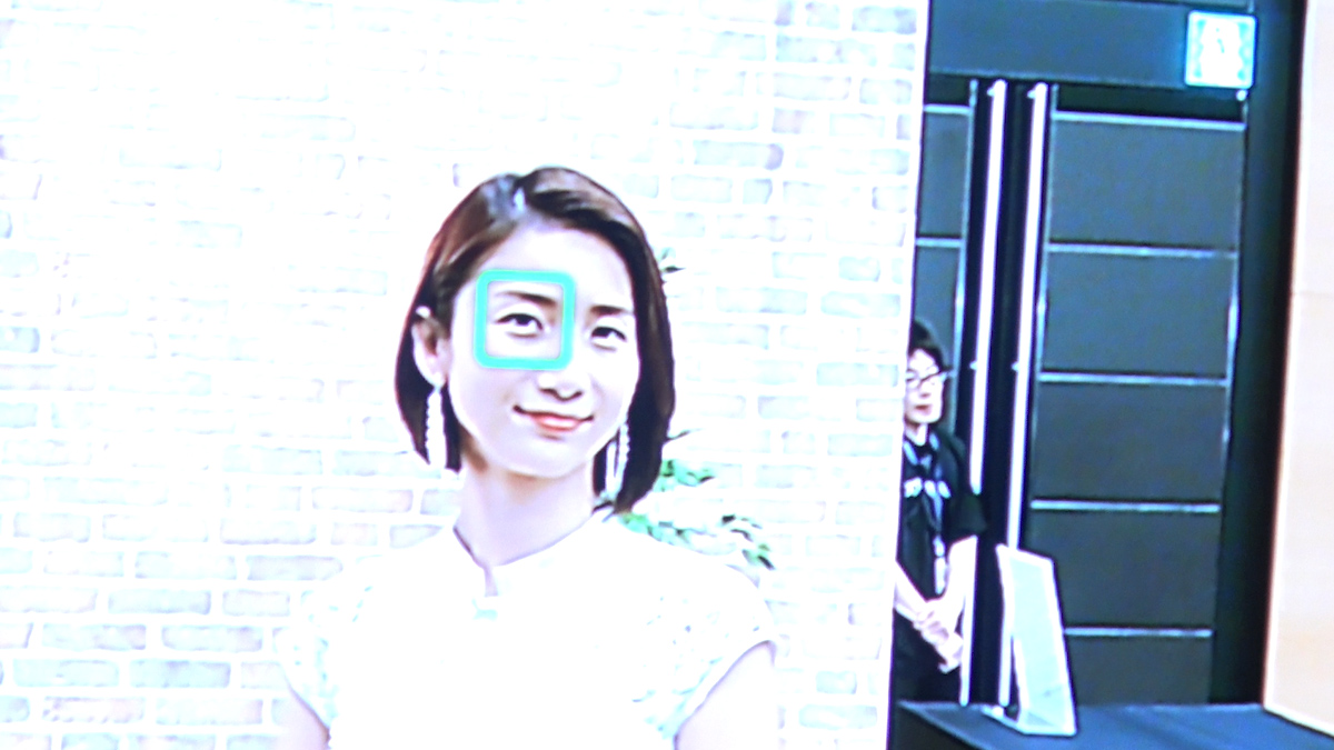 撮影ブースで実際に試してみましたが、モデルさんにXperia 1を向けると、即座に瞳に四角が出現。ピントがバッチリあった写真撮影が、スマホで手軽に楽しめるようになりそうです。