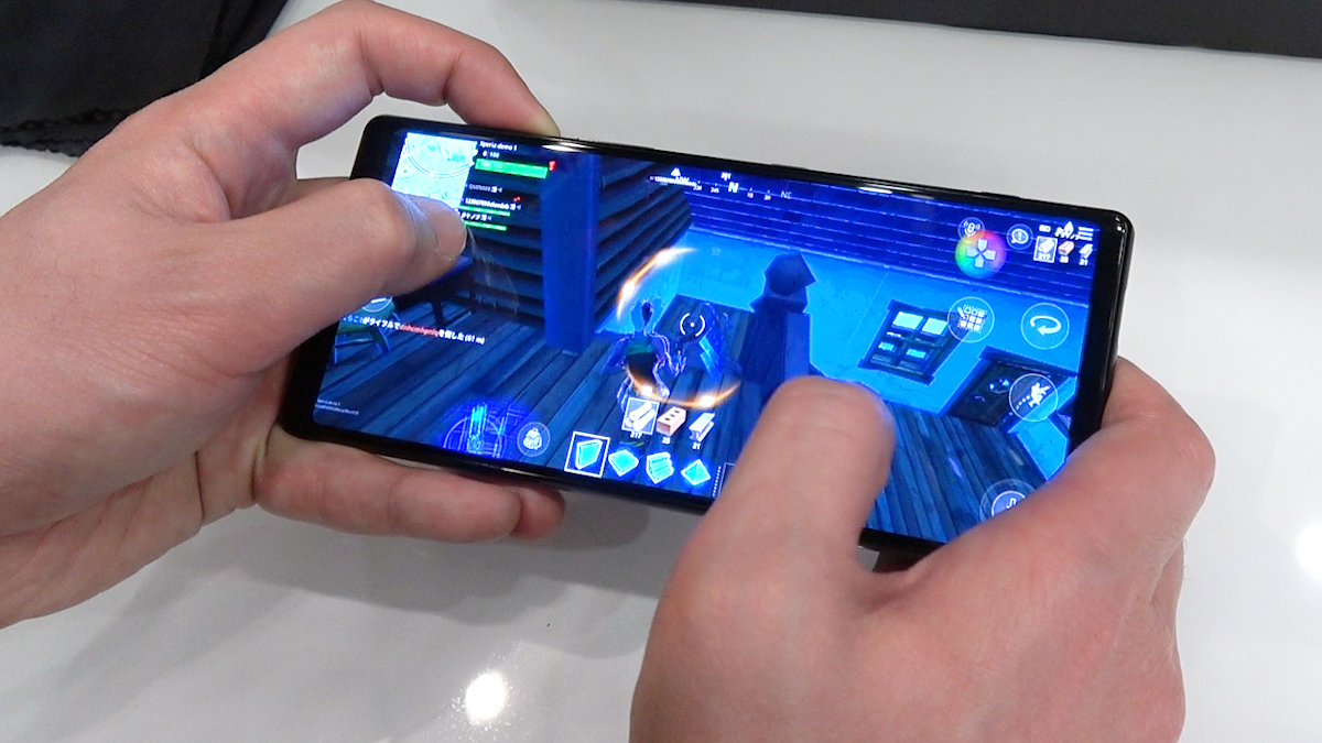 また、このアスペクト比に4つのスマホゲーが対応。「フォートナイト」をプレイしてみたら、普段は見えないエリアまで見えちゃうので、横長のゲーミングモニターでプレイしているような感覚。