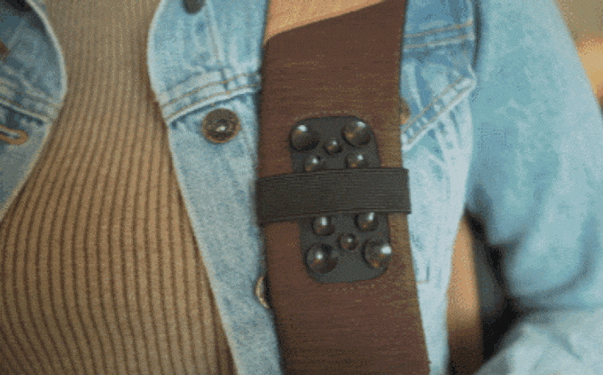 ユニークなデザインも採用しており、なんとストラップ部分にスマホを貼り付けられる。コンビニなどの支払時に、手に持ったスマホが邪魔なときは便利に活用できそうだ。