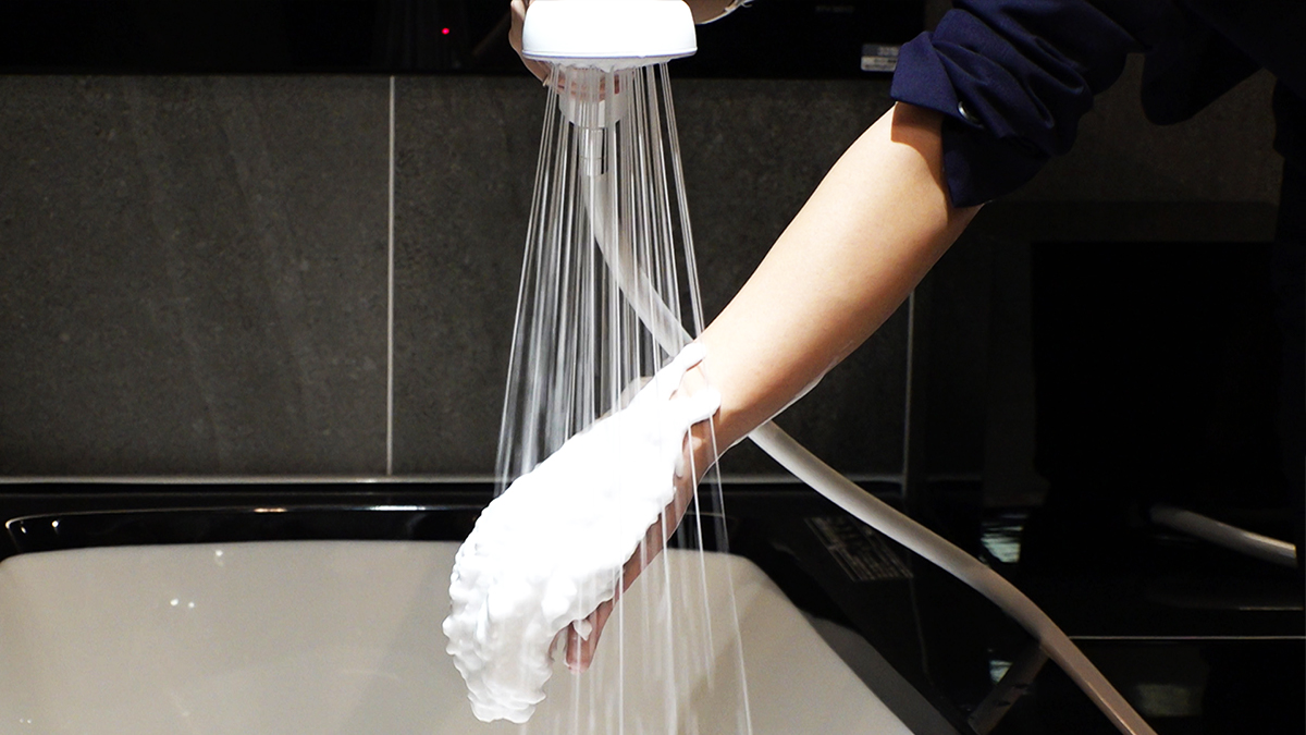 これは、モリタグループが開発する消防車に搭載される泡の生成技術を応用して作られたもの。2年の開発期間を経て、バスルームの知見を持つNITTO CERAとの異業種コラボレーションが実現。そこから9ヶ月で製品化が実現した。