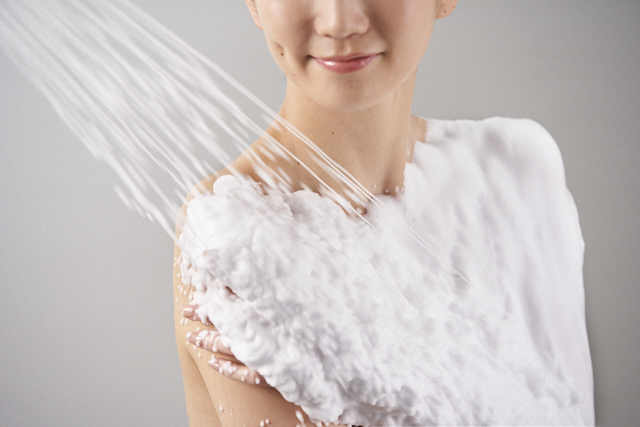 自動生成された高密度の温かい泡が、シャワーヘッドから放射される。