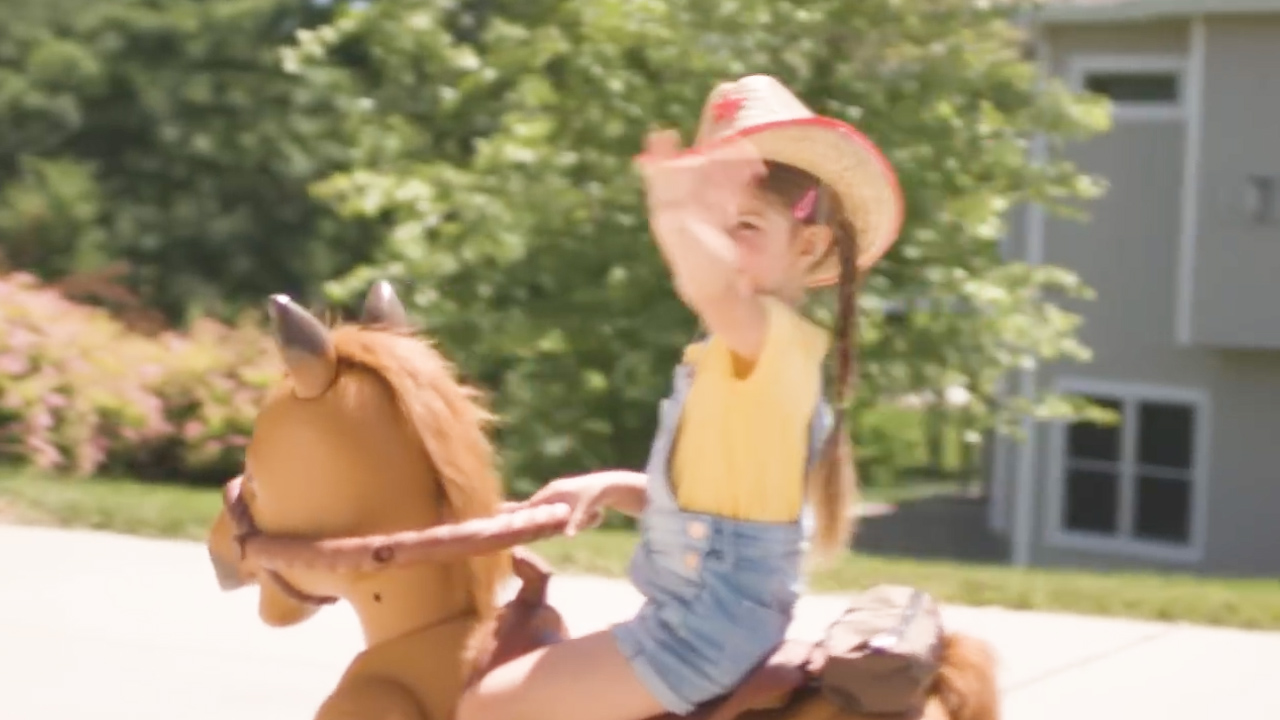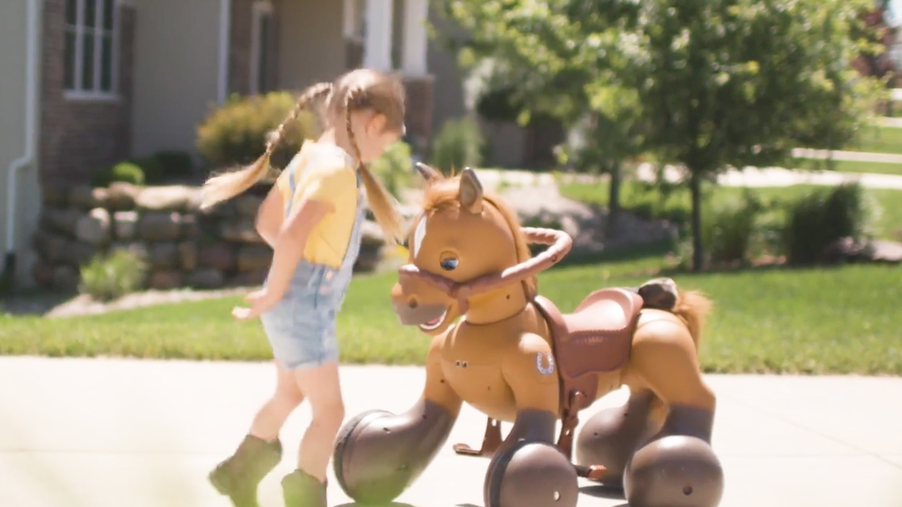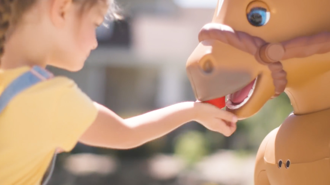 「Rideamals Scout」は3〜7歳を対象にしたおもちゃで、特大サイズ。高さが70cmほどありで重さは30kg。肩にある蹄はスリープモードの馬を起こすスイッチになっている。