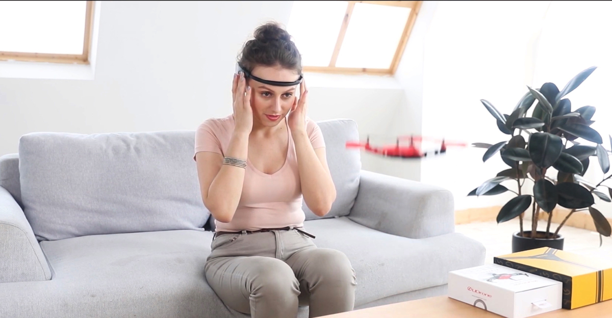 付属のヘッドセット「UMind Lite」が脳波を読み取り、念じるだけでさまざまなコントロールが可能。