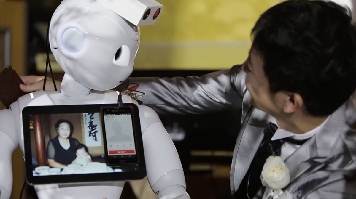 遠く離れた場所にいる祖母は分身であるPepperを介して、息子の晴れ姿を目に焼き付けながらハグすることができたという。