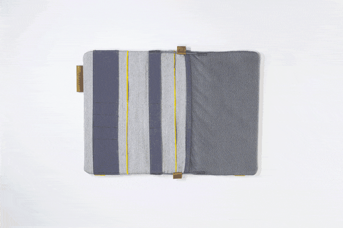 「SLIM」はペン、スマホ、名刺などが入るポケットが付属。13〜17インチのノートPCや、A4サイズのノートに巻き付けられる。