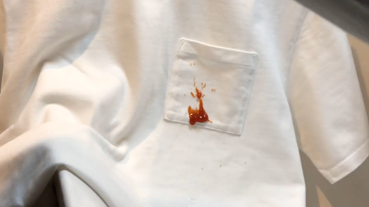 ケチャップを垂らし水で流せば、汚れも水も吸収されないためほとんど無敵といえる。
