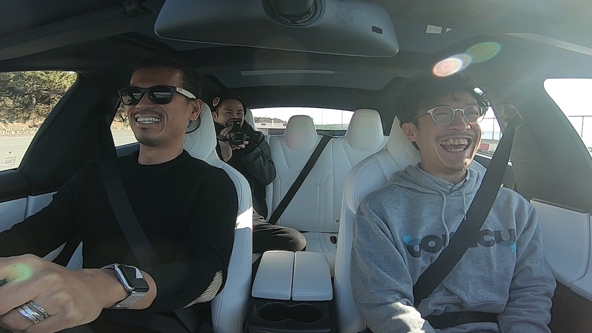 ——小河:プロレーサーでも、すごく決まって時速100kmまで3秒くらい。テスラは素人が乗っても、アクセルを踏むだけで2.7秒出ちゃう。誰でもプロレーサーより速く走れるのがこの「Ludicrous」モード。