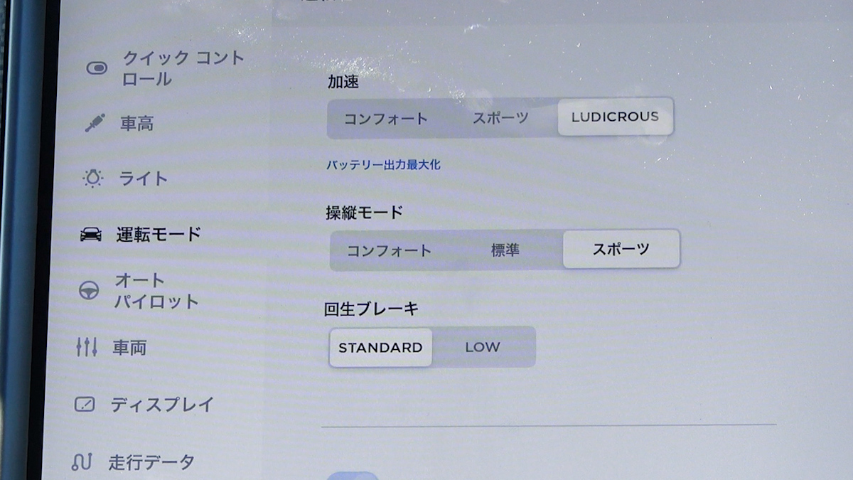 超加速モード「Ludicrous」