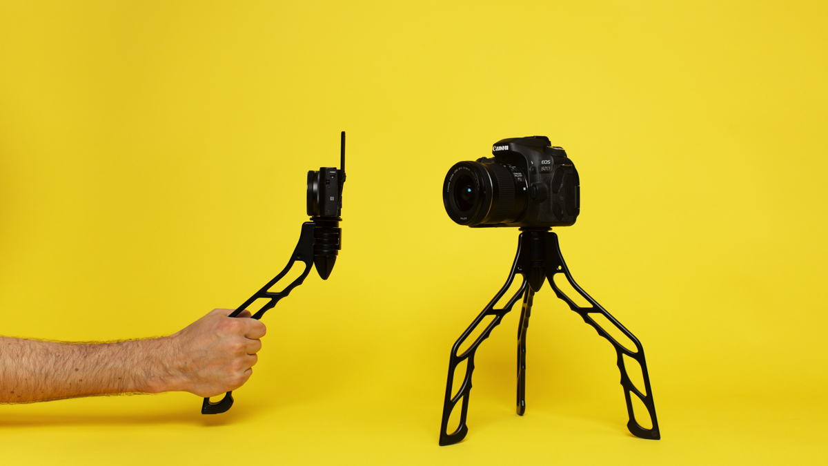 一瞬で"手持ちモード"から"三脚モード"へ切り替えられるポータブルな新型カメラ三脚「SwitchPod」。安価な小型三脚は強度不足でデジイチを載せると壊れたり、安定しなかったりすることが多々あるが、「SwitchPod」はどちらも問題ない設計だ。