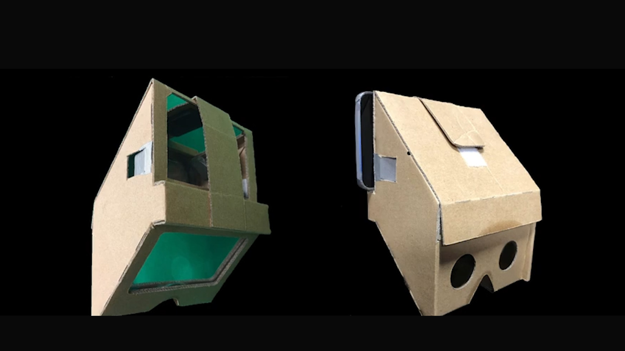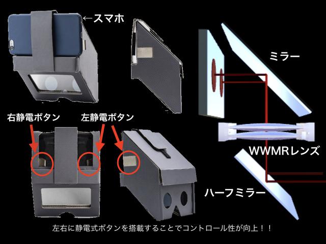 ダンボールと独自開発のWWMRレンズのふたつが、格安のMRホログラムを実現している。