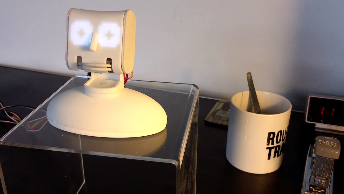 また、特徴的な目の部分は、フルプログラマブルなLEDマトリックス。16 × 9の144pixelsに自由にアニメーションを作ることができる。