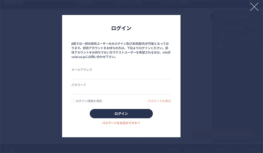 サイトの「いますぐつくってみる」から進んでいったところにある以下の画面から、