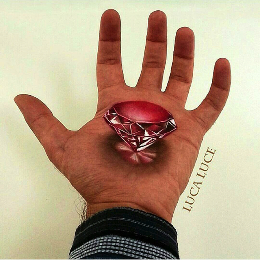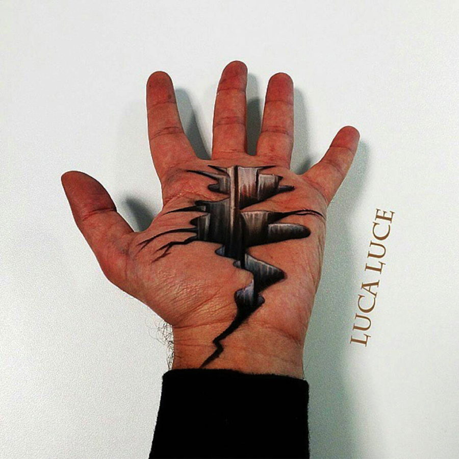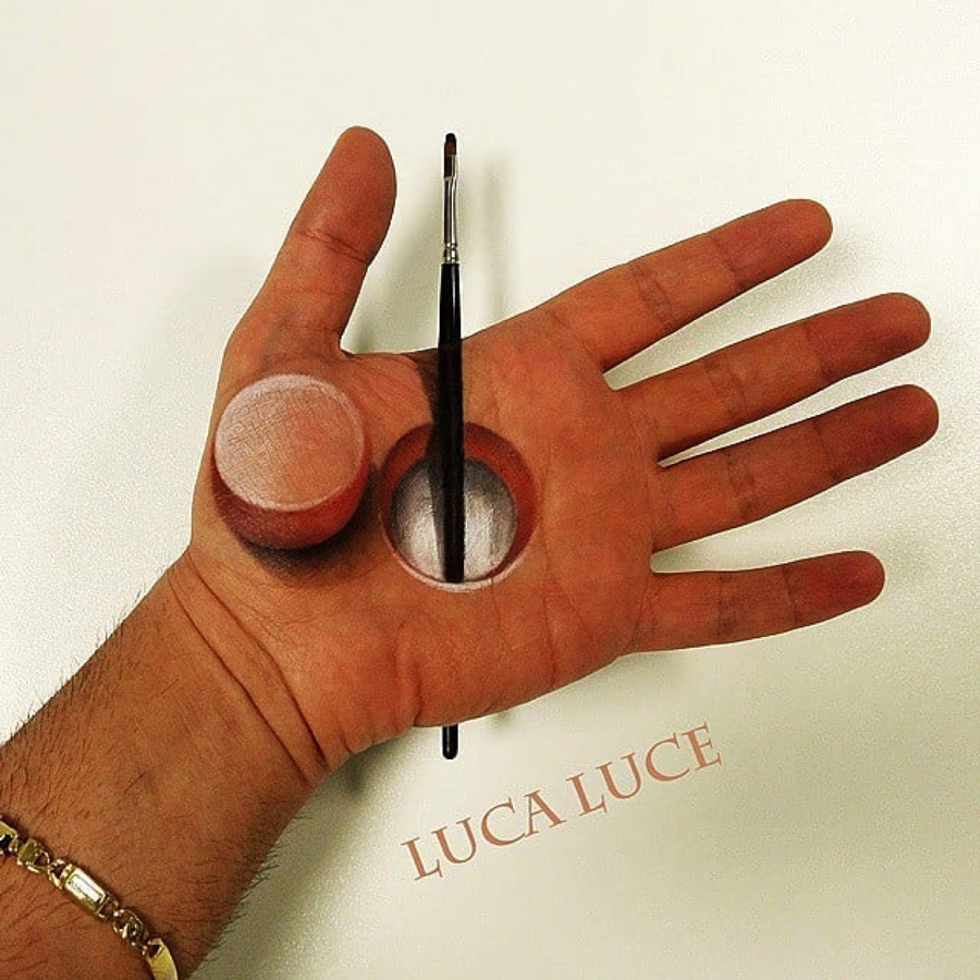 「Luca Luce」が作る作品は、主に顔と頭、手をキャンバスにあらゆるモノを表現している。頭の真ん中が凹んだり、階段のように段差ができたり、CGにしか見えない作品を見事に描いている。