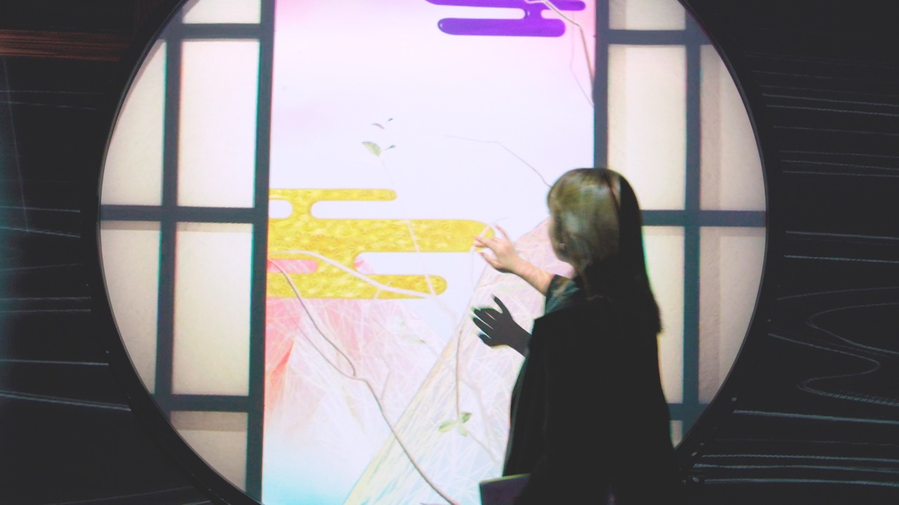 会場は、丸窓や、和歌、生花、竹林、葛飾北斎の代表作「富嶽三十六景」など和をモチーフに空間演出がされている。その演出に3D音響技術や、アロマミスト、センシングなどの革新的なテクノロジーを用いることで、見たことのないインタラクティブな体験を提供している。