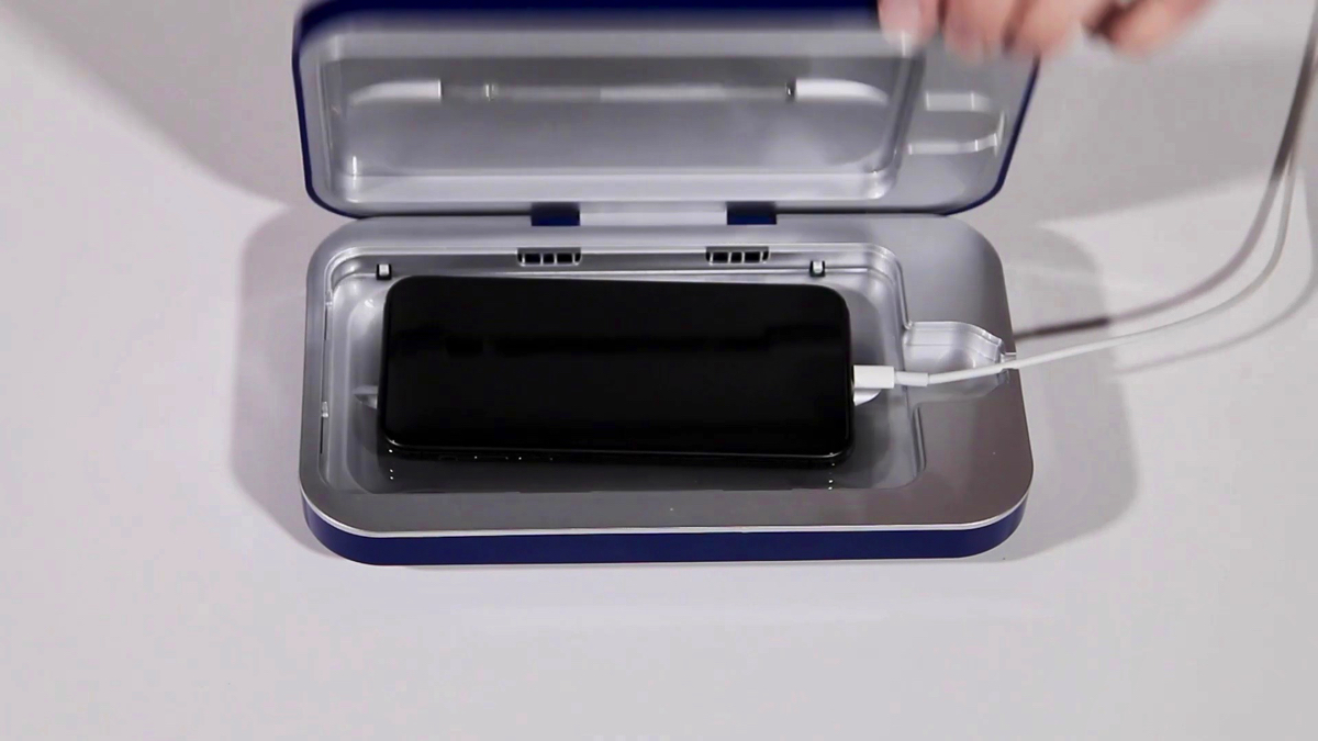 アメリカを拠点に活動するPhoneSoap社が開発した、ポータブル型の紫外線除菌器除菌器「PhoneSoap GO」。iPhone X、Galaxy A9、Pixel 3などの最新スマホを収納できるサイズ。UV-Cライトによって、99.99%の細菌を除去できるという。