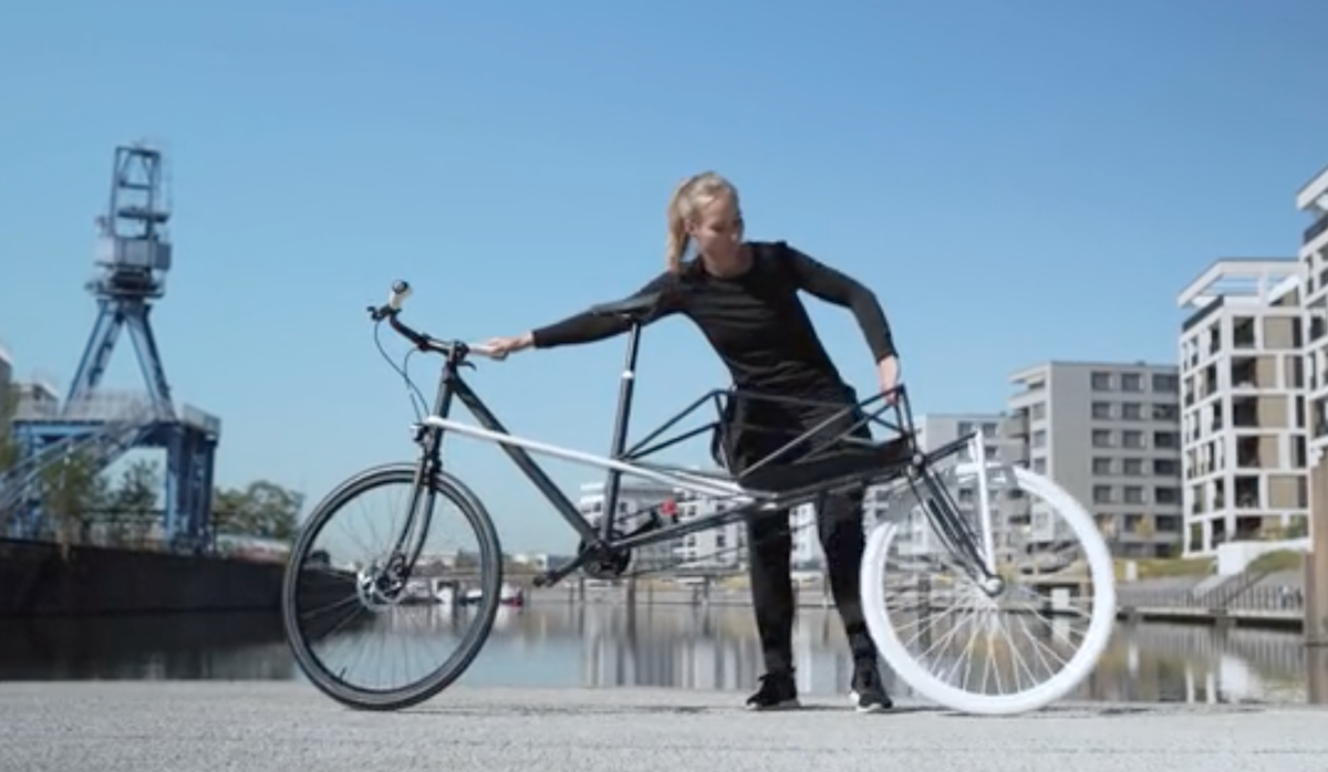 ドイツでプロダクトデザインを学ぶDavid Maurer-Laube氏らが開発する、電動アシスト自転車「CONVERCYCLE BIKE」。街乗りモードと荷台モードを、後輪部を前後に動かせる機構によって、使い分けることができる。モーター出力は250Wで、最高時速は25kmとなっている。