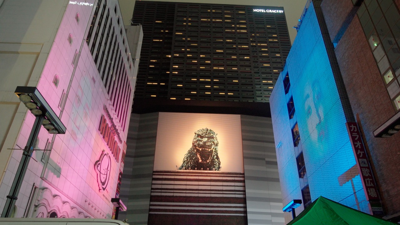 さらに、ネオンが明るい歌舞伎町の夜景に、映像の投影はとても困難なため、5基のプロジェクターを設置したうえに、ビルの所有者に協力を仰ぎ、看板などの証明を極力落としてもらい、実現した。