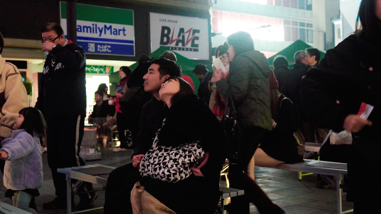 初演、23日18時の上演では、偶然居合わせた通行人はあたりを見回し、驚いた様子。また、不思議なイベントに偶然居合わせたカップルや家族連れなどが足を止め、上演に見入る姿が見受けられた。