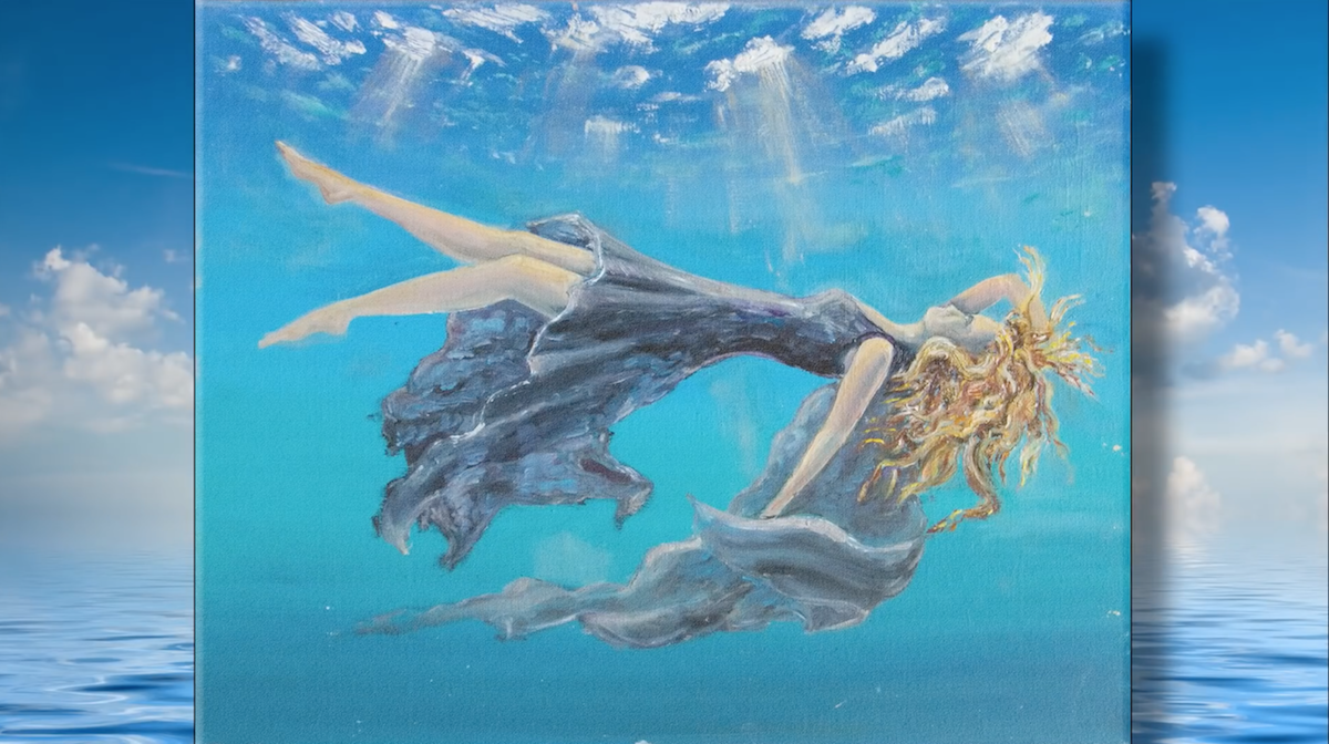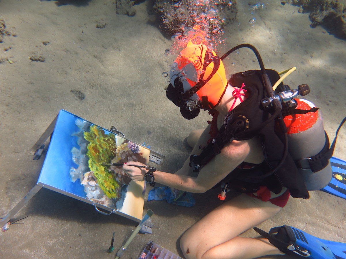水中で絵を描くアーティストOlga Belka氏。ダイビングインストラクターでもある同氏は、文字通り水中でキャンバスに絵を描くことで、海の神秘あふれる様々なアート作品を披露している。