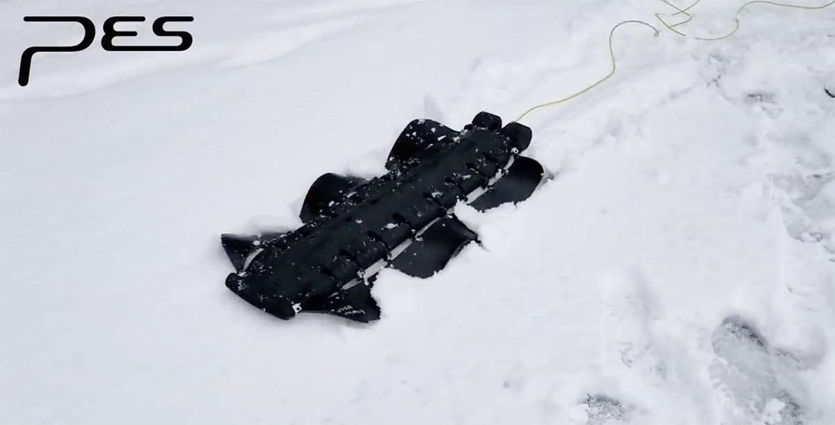 ヒレをウネウネとくねらせることでスムーズに推進可能で、氷の上や雪道に加え、水中も泳いで推進できるなどさまざまな環境に対応できる。