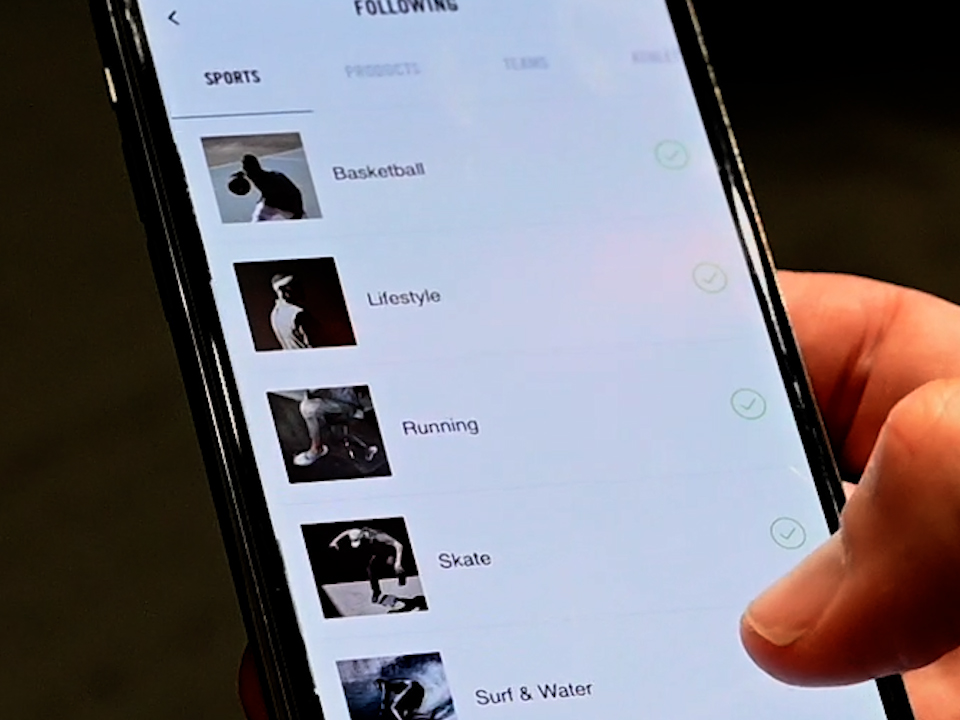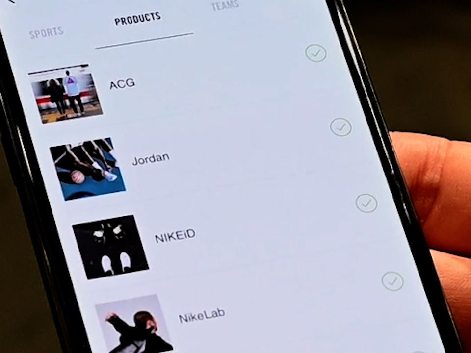 性別や靴のサイズを登録し、興味のあるスポーツや商品をフォローすると自分にあったナイキの情報がアプリ内のフィードに流れてきたり、自分にオススメの商品の情報を見られる。