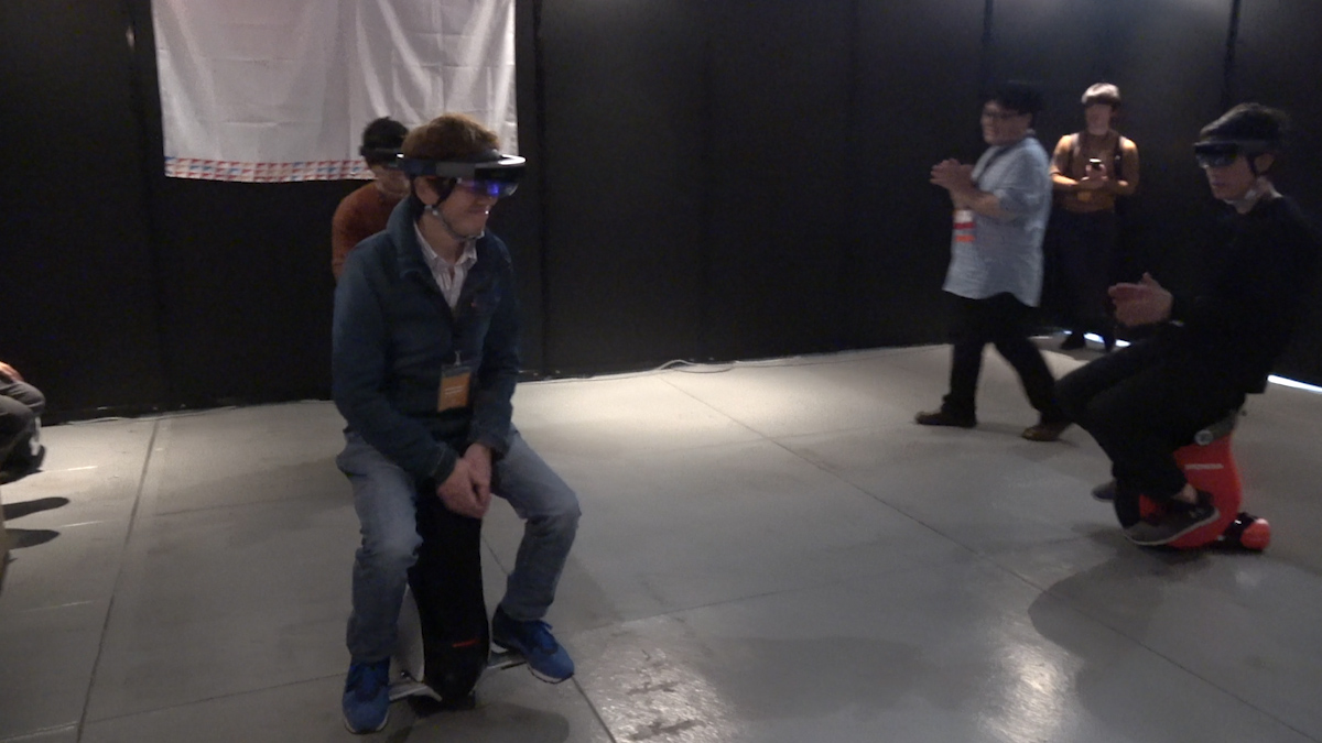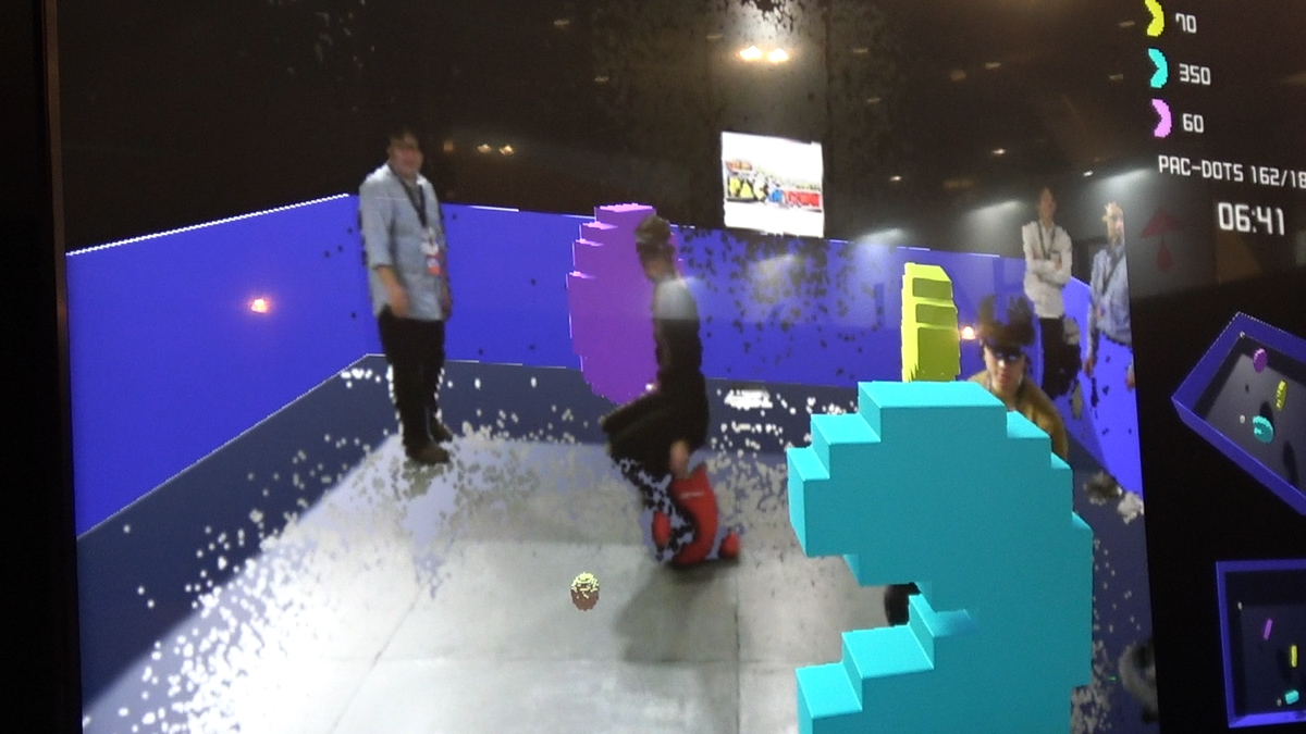 バンダイナムコスタジオが展開していた「パックマンMRアトラクション」はMicrosoft HoloLensを使用し、HONDAの「UNI-CAB」に乗りながらリアルでパックマンをプレイする。