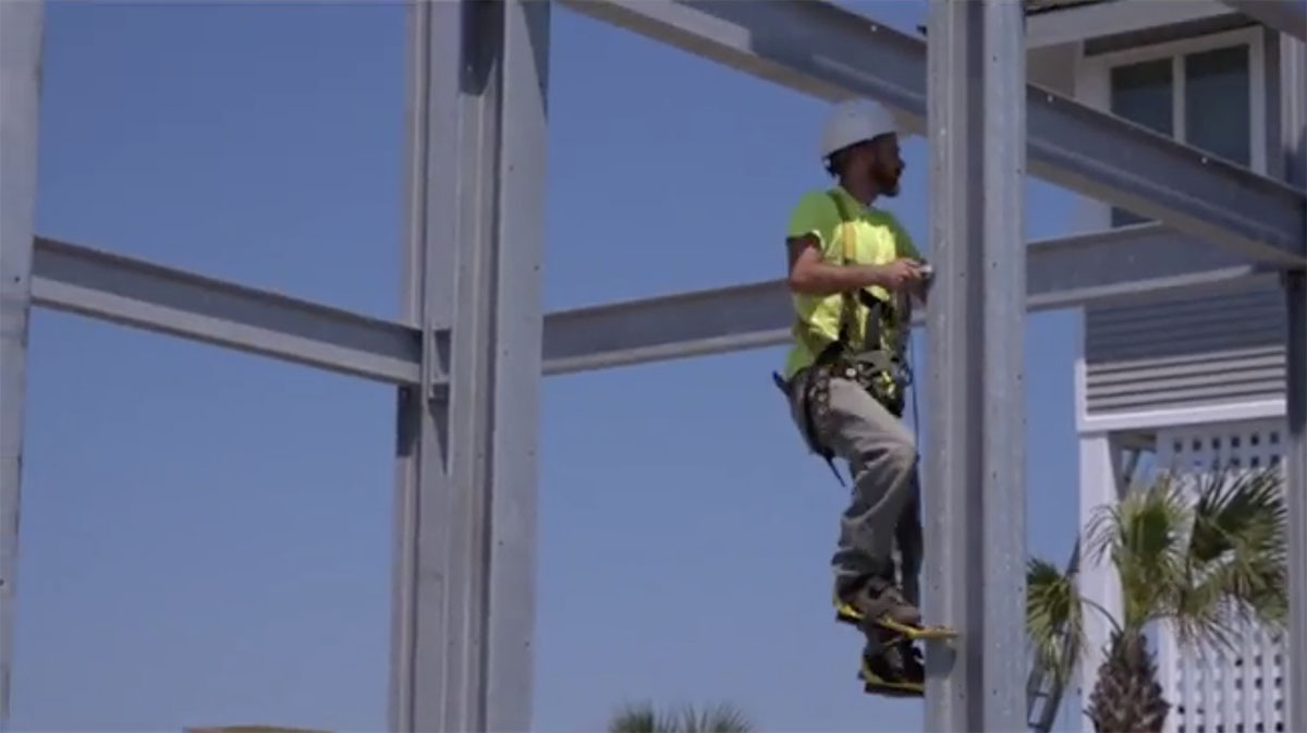 アメリカの企業が開発した、安全かつ素早く鉄骨が登れる「Column Climber」。両足でスイスイと登り、両手がフリーな状態で高所作業が行える頼もしいアイテムだ。