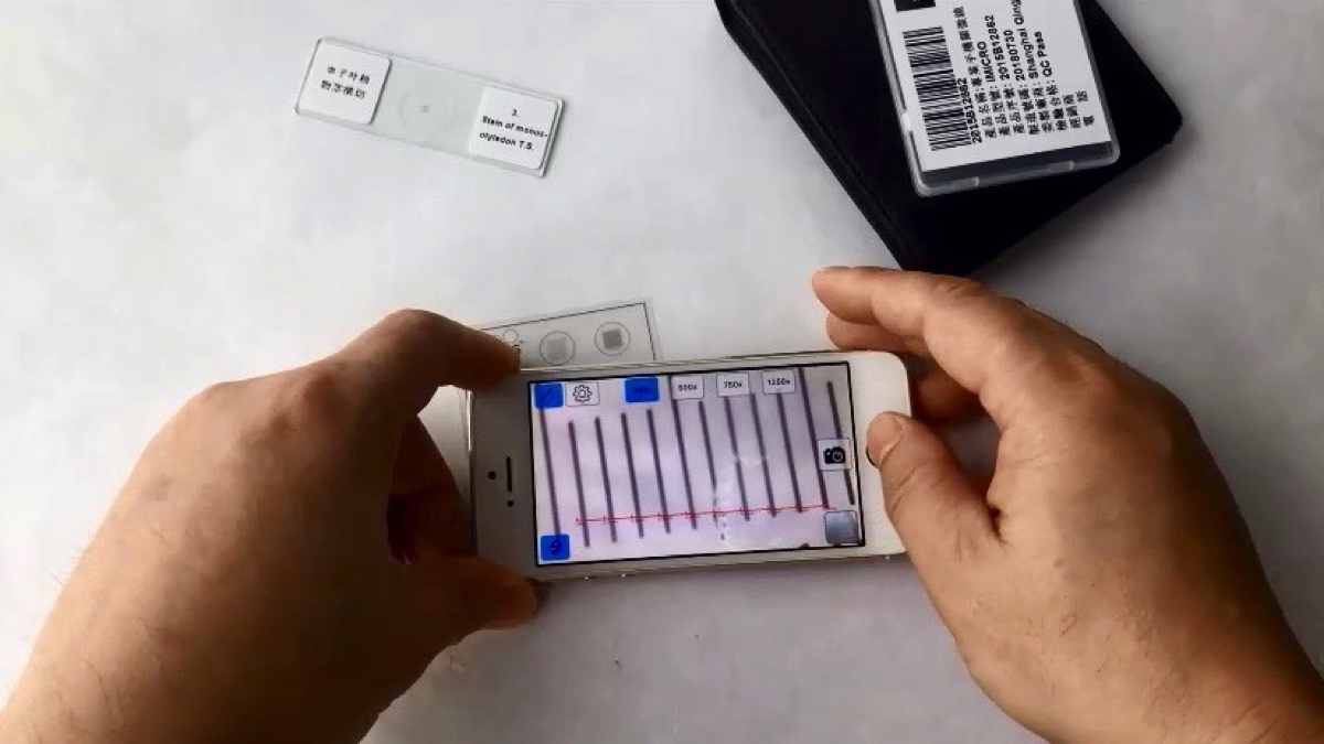 QingYing E&T社が開発する、スマホのレンズに装着する指先サイズの顕微鏡「iMicro」。最大800倍ズームに対応しており、スマホのレンズでは見ることのできないマイクロメートルの世界を見ることができる。