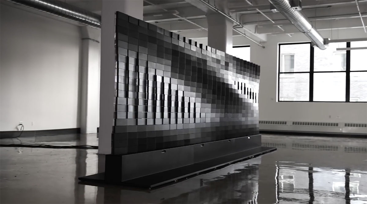NYのアートスタジオBREAKFASTが手がけた、鏡面仕立てのブロックが無限に回転するインスタレーション「Brixel Mirror」。人の動きに反応しながら無数のブロックが様々なパターンを映し出す美しいアート作品だ。