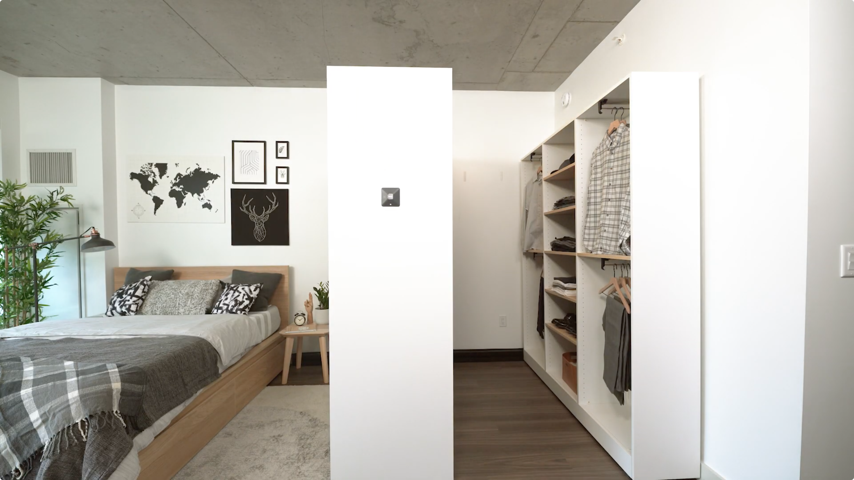 「Ori Pocket Closet」は部屋のデッドスペースをウォークインクローゼットに変えるアイテムだ。ボタン一つで簡単に開閉でき、さらにはスマホや音声アシスタントからの操作も可能。