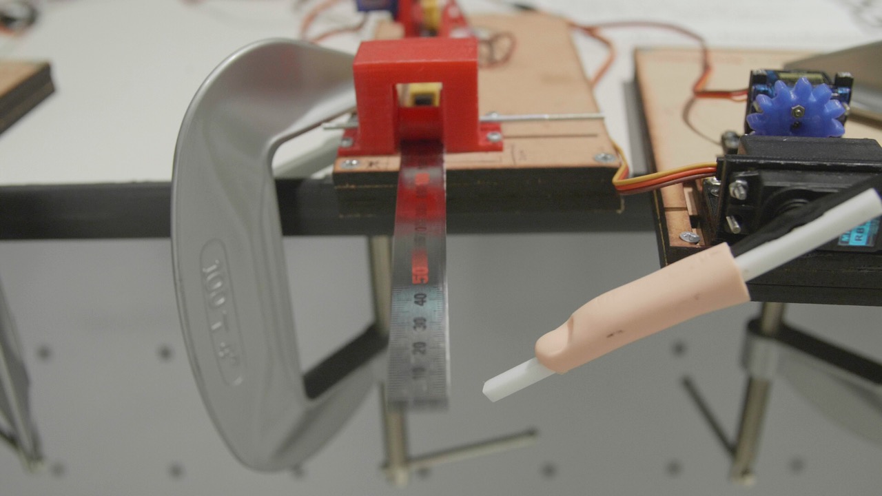 ソフトウェアエンジニアが「技術を無駄遣いしよう」と開発した作品。誰もが幼い頃に体験した、物差しを弾いて音を鳴らす遊びを、自動化し楽曲を奏でる。