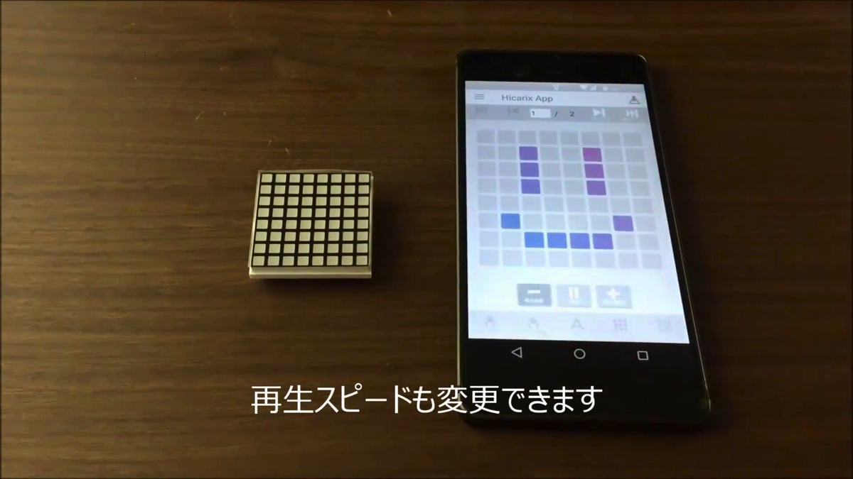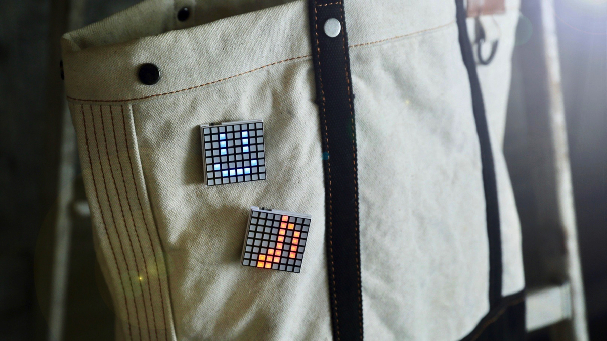 本業は会社員プログラマーである岡本智博氏が開発した、光るLEDバッジ「HICARIX BADGE」。8 × 8個のマトリックス状にLEDが並んでおり、自分でデザインしたパターンに光らせることができる。
