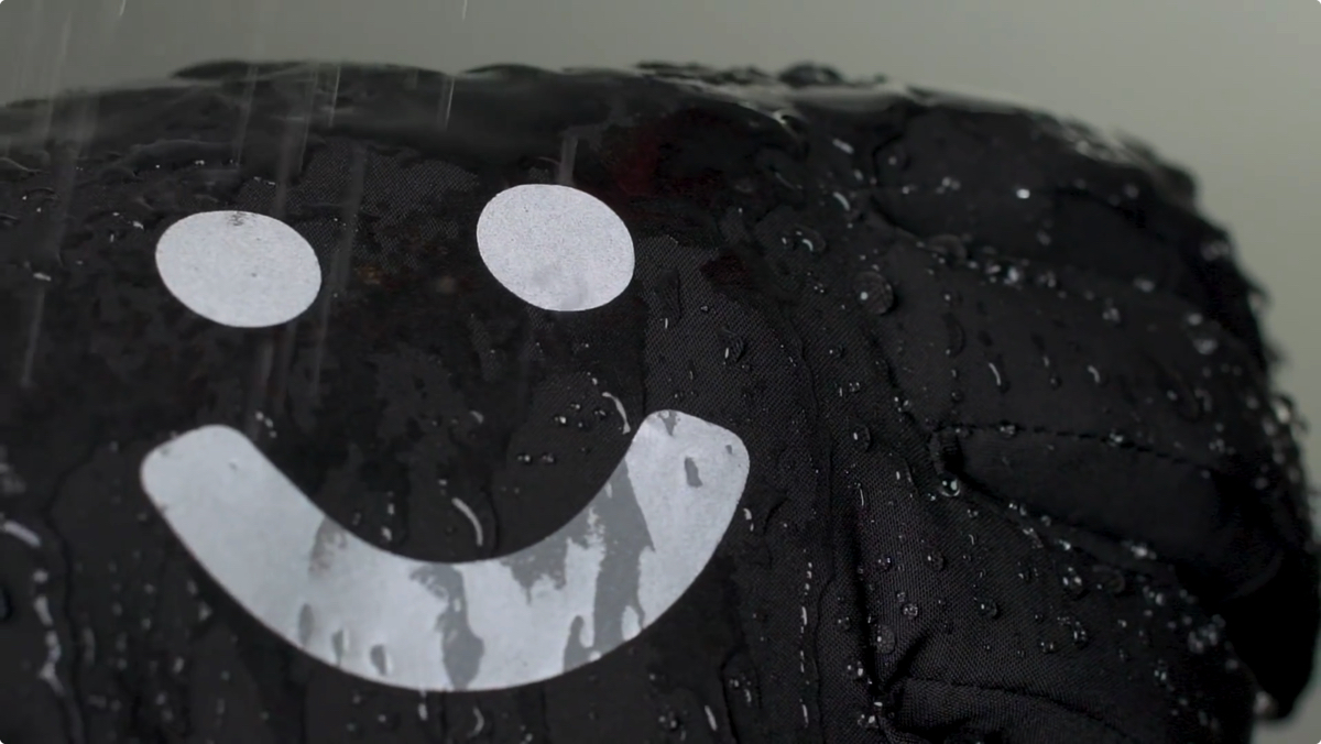 夜間の使用にも適しており、スマイリーの部分が反射材を用いているのでコミュニケーションとしてだけでなく、車などから身の安全を守る存在にもなってくれる。