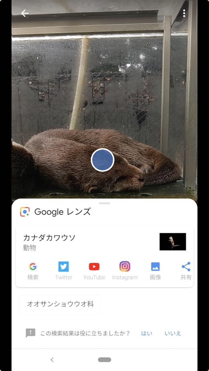 一方で、「アジアゾウ」をスキャンしても「インドゾウ」と表示されたり、「ユーラシアカワウソ」を「カナダカワウソ」と認識したりと、細かい分類までは難しいようでした。