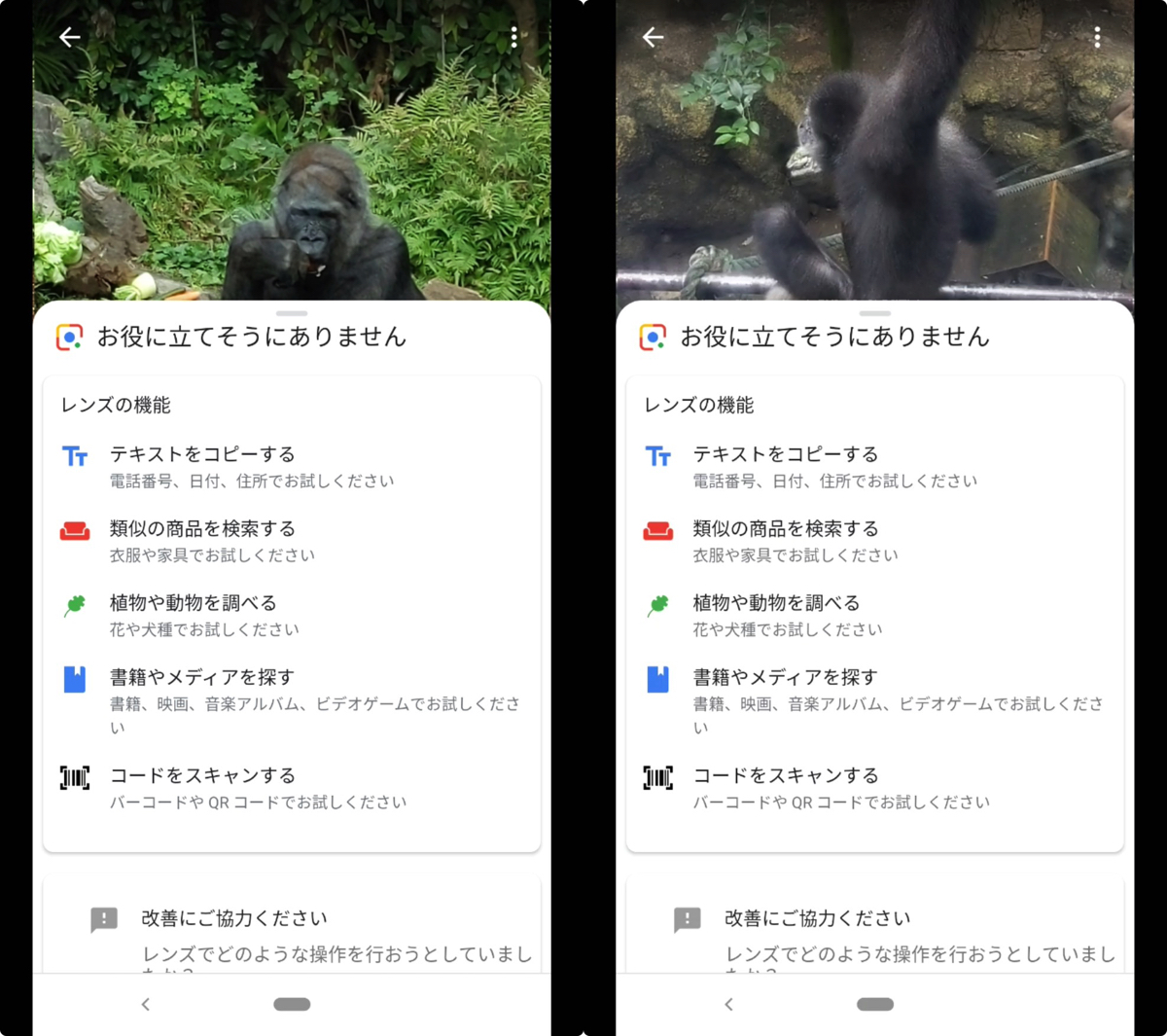 なお、人間はスキャンしても認識できないのですが、ゴリラやサルといった霊長類も認識しませんでした。Googleは以前に、画像認識システムで「人間をゴリラと認識する」という問題を起こしたことがあるので、人間に近い対象には慎重なのかもしれないですね。