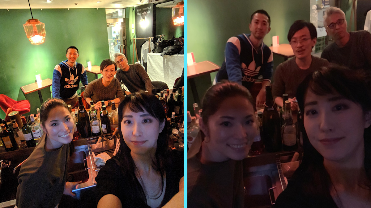 Pixel 3シリーズは、インカメラを広角にすることができ、自撮り棒がなくても片手で大人数の自撮りが可能。さらに夜間モードはインカメラでも使えるので、生活レベルで大活躍してくれる機能となっています。