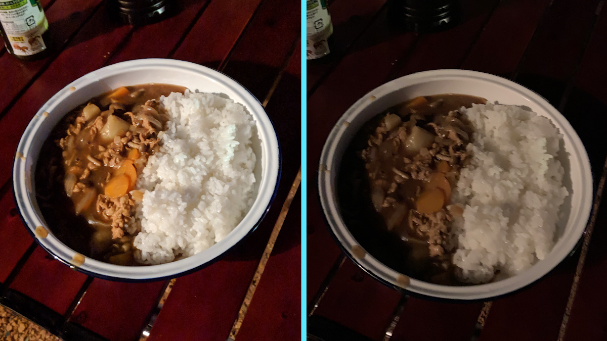 Pixel 3シリーズ の純正カメラアプリには、暗い場所でも明るく撮影可能な「夜間モード」が搭載予定。スローシャッターで光を集めて撮影し、仕上げにAIが自動補正する仕組み。シングルカメラながらどれほどの性能を発揮するのか、比較用にiPhone XSを使って、同じアングルでいろいろ撮影してみました。