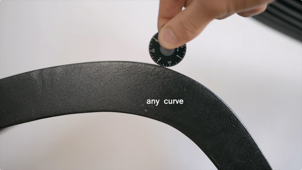 メジャーといえば板状やテープ状のものを想像するが、今回紹介する「Rollbe Click」はコロコロ転がるタイヤのような形をしている。特殊な形をしていることで、いままで計りにくかったカーブしているものでも簡単に計測可能だ。