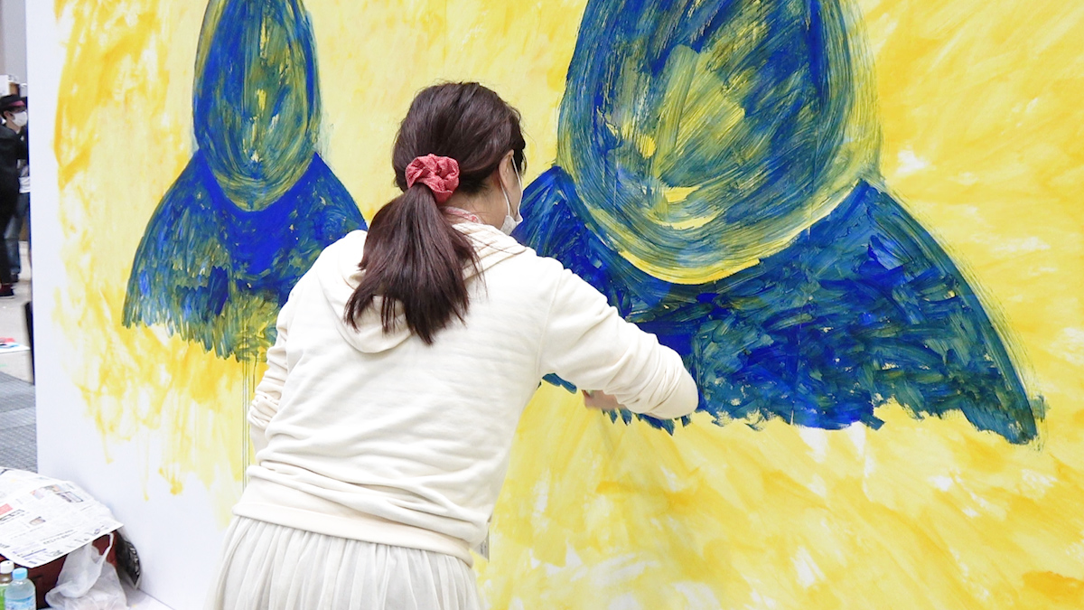 年齢や国籍、ジャンルやスタイルを問わずに集まった1万人以上のアーティストが会場で思い思いの作品を披露している。