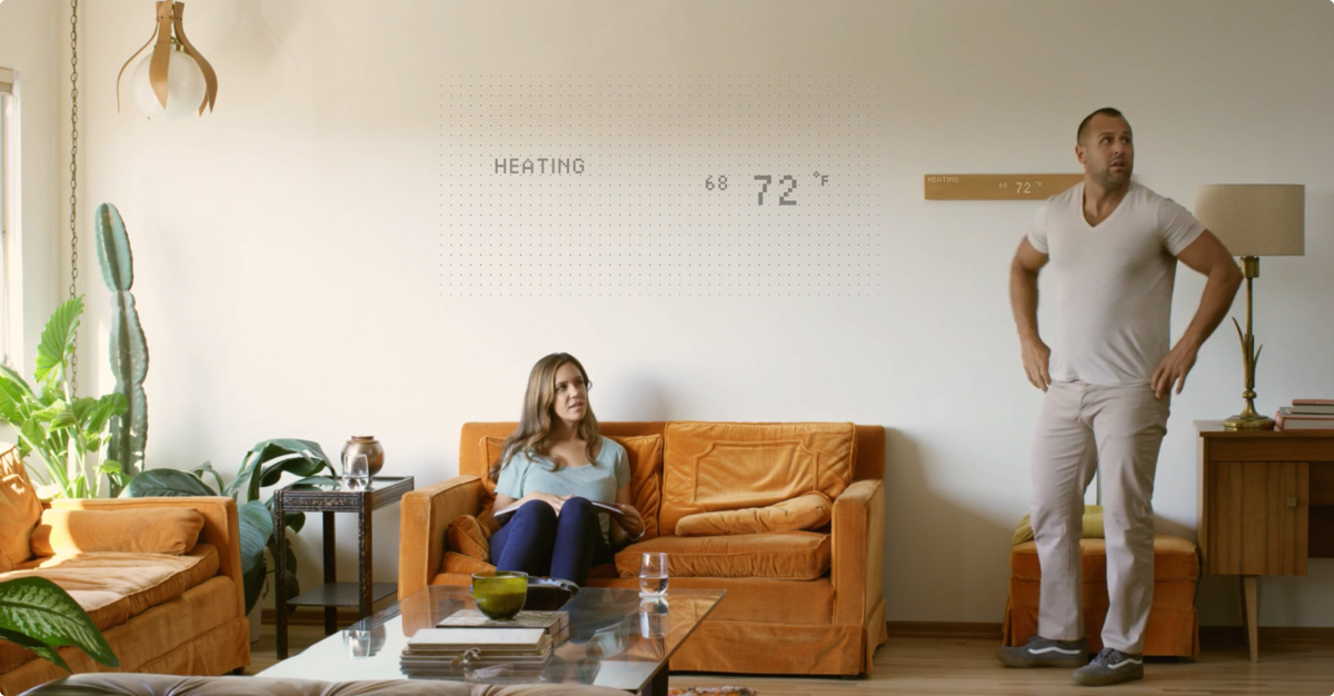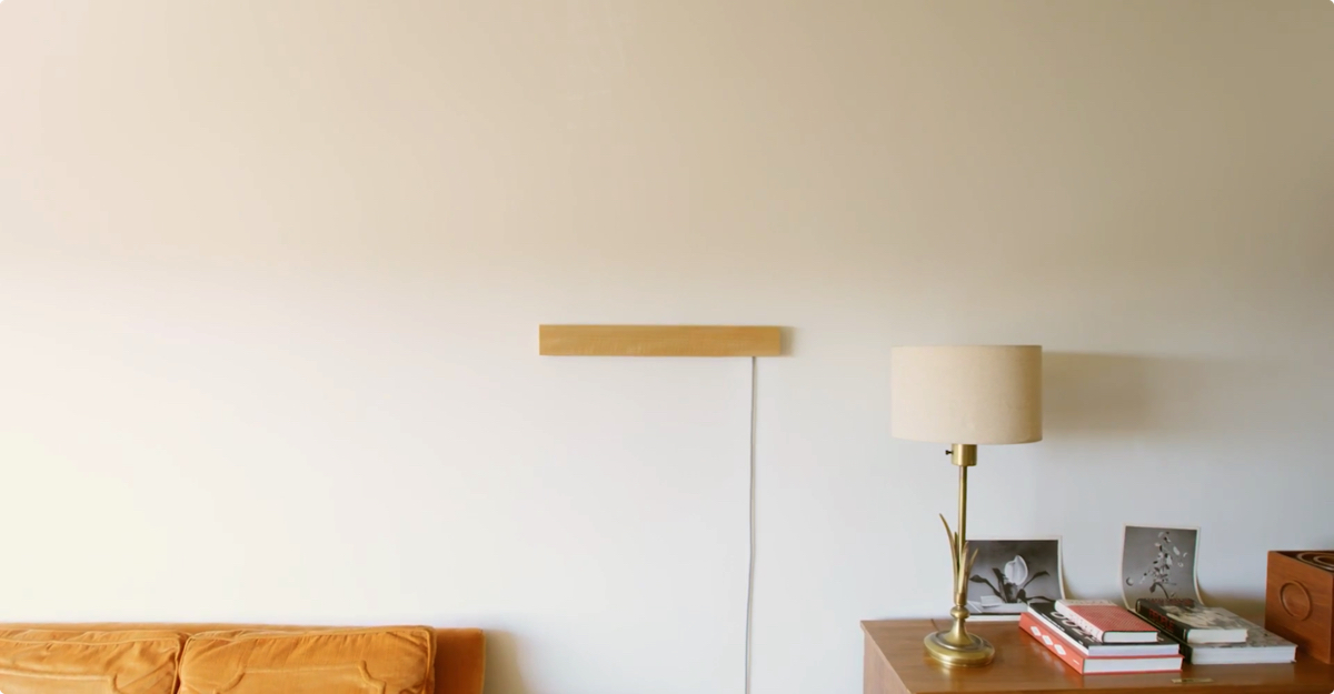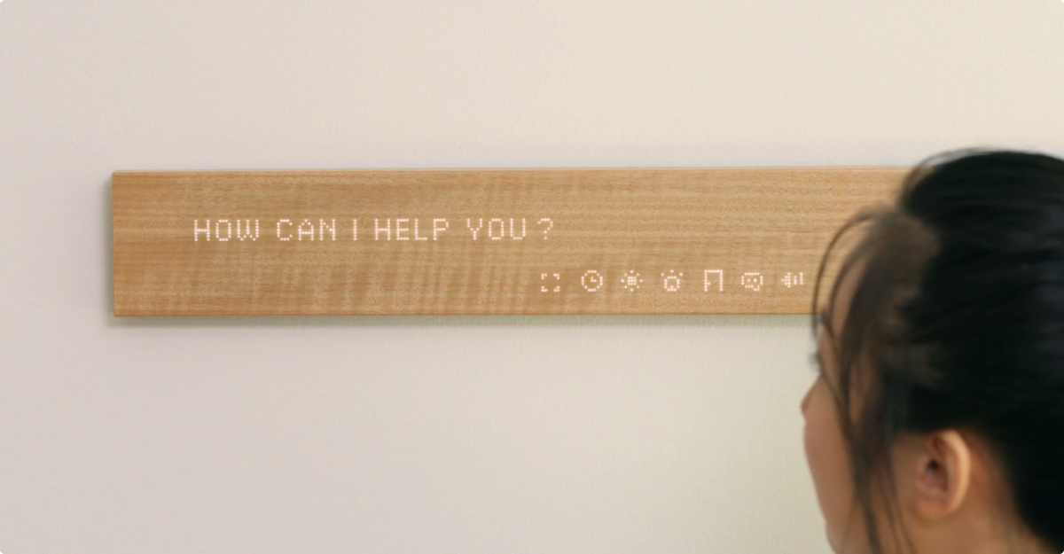 スクリーンからの光も少なく、目を疲れさせない。家具との相性もよく、部屋に優しい雰囲気をもたらしてくれる新しいIoTデバイスだ。