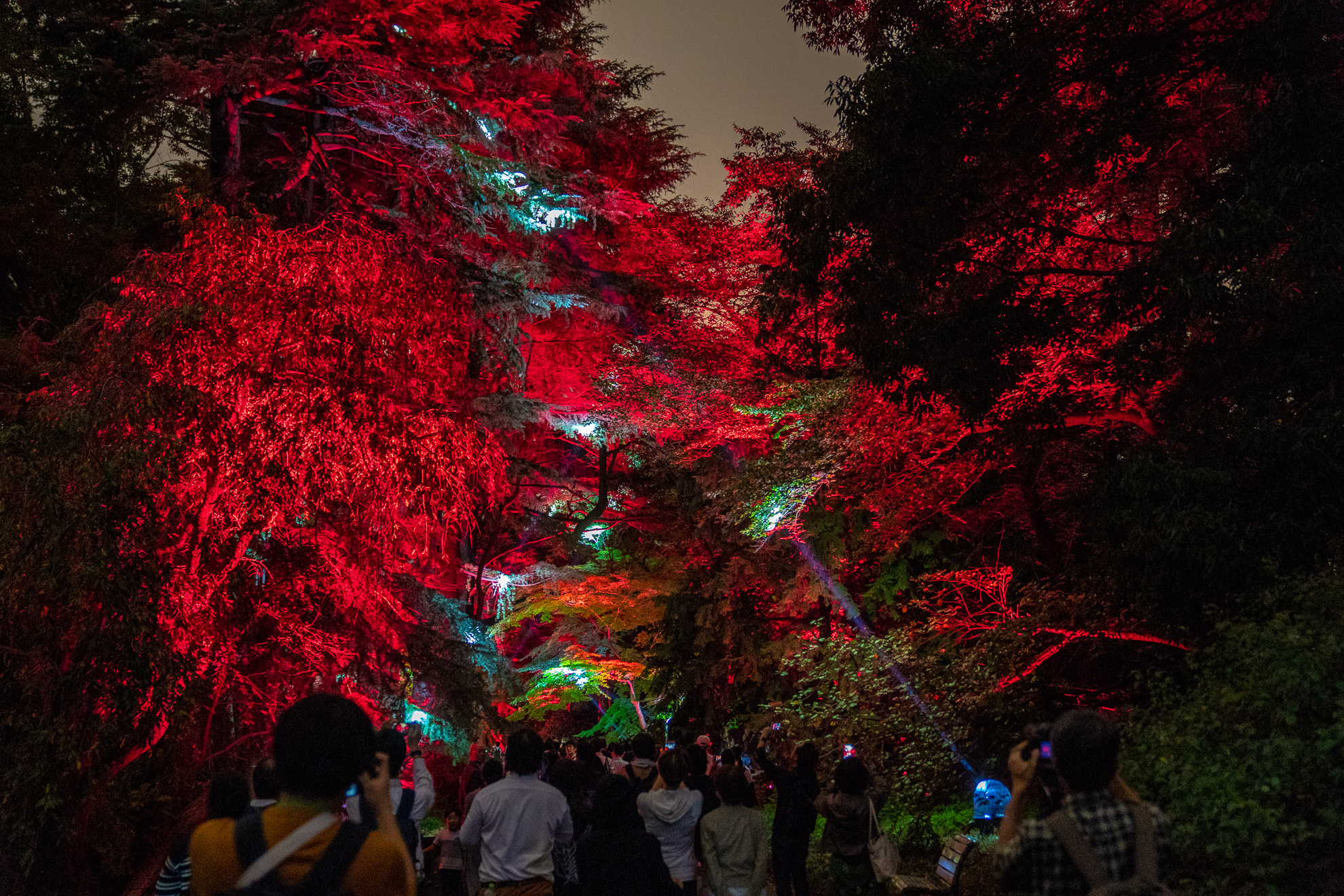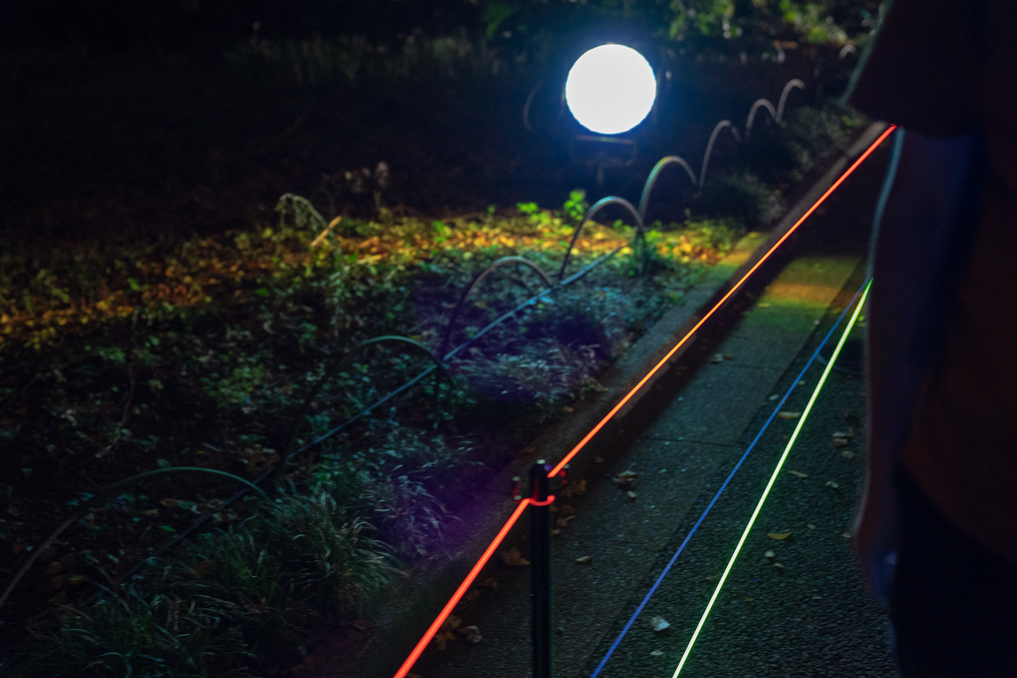 ライトアップされた桜や紅葉を愛でるイルミネーションイベントとは違って、約2kmを歩きながらアートを体感する体験は新鮮でした。また、もともと夜の時間は開放していない新宿御苑は外灯がなくそもそもが暗いので、暗さの中に色々な光が混ざっていることも印象深かったです。