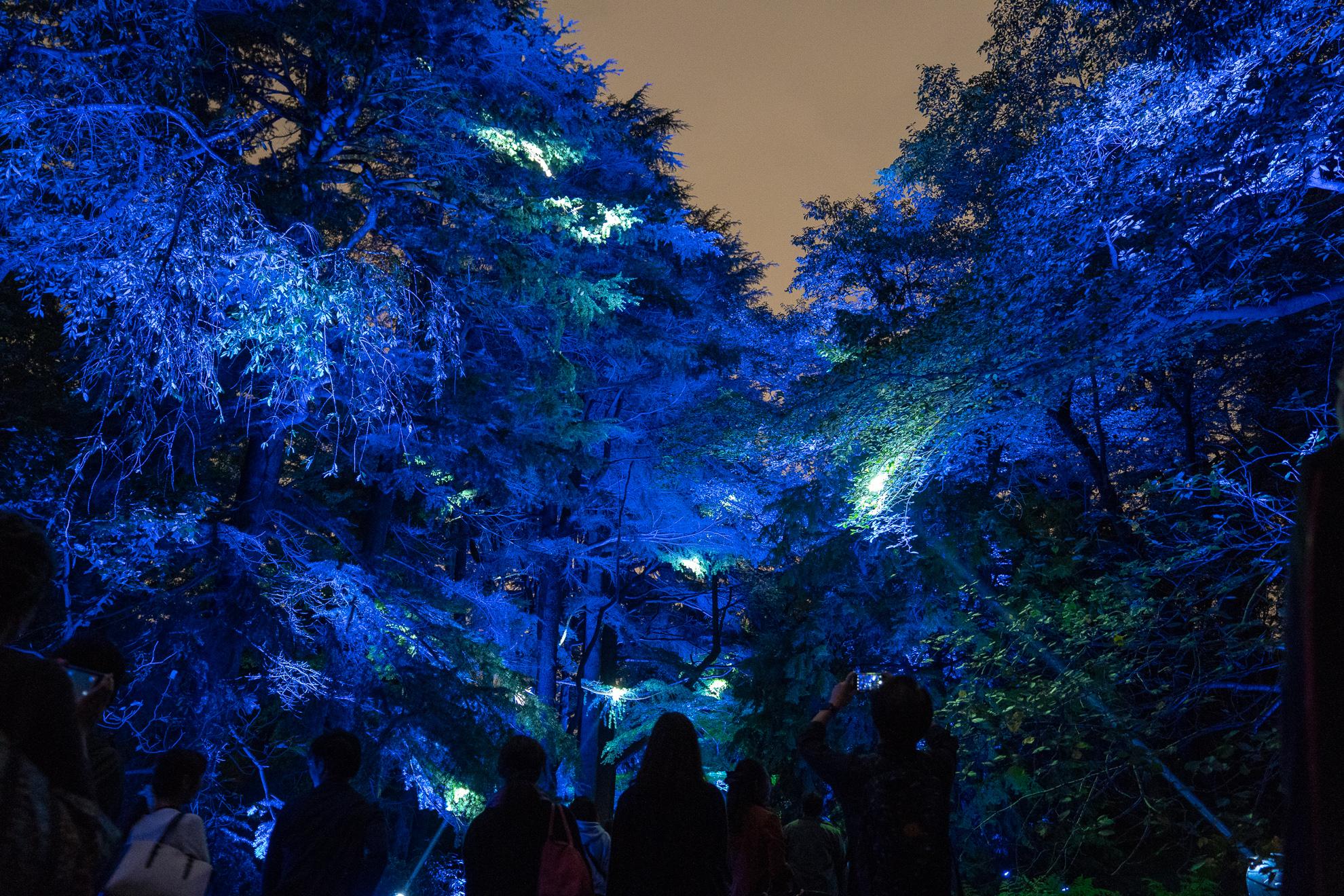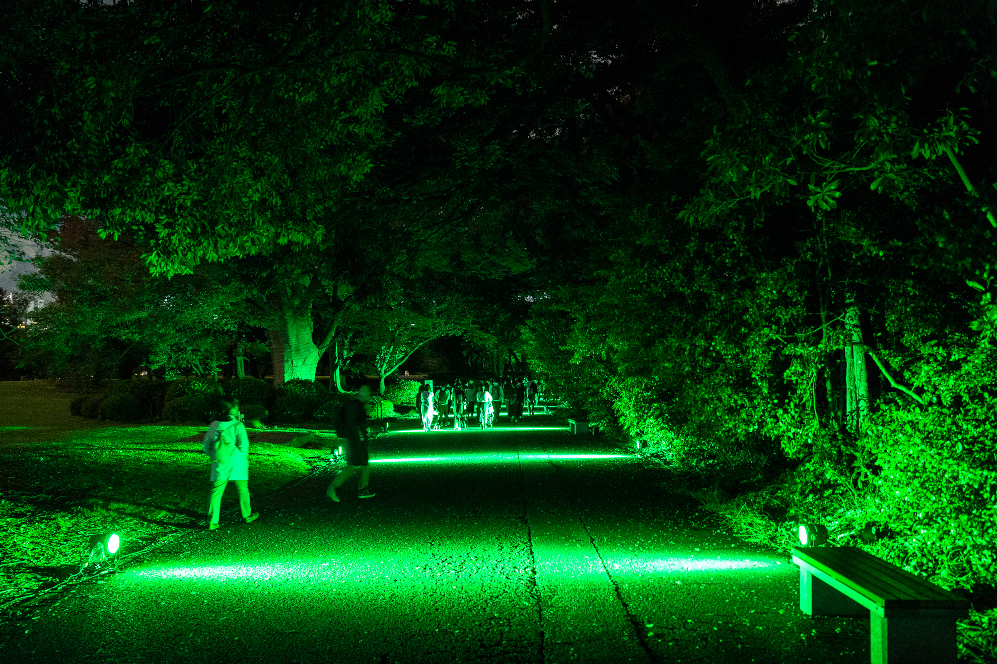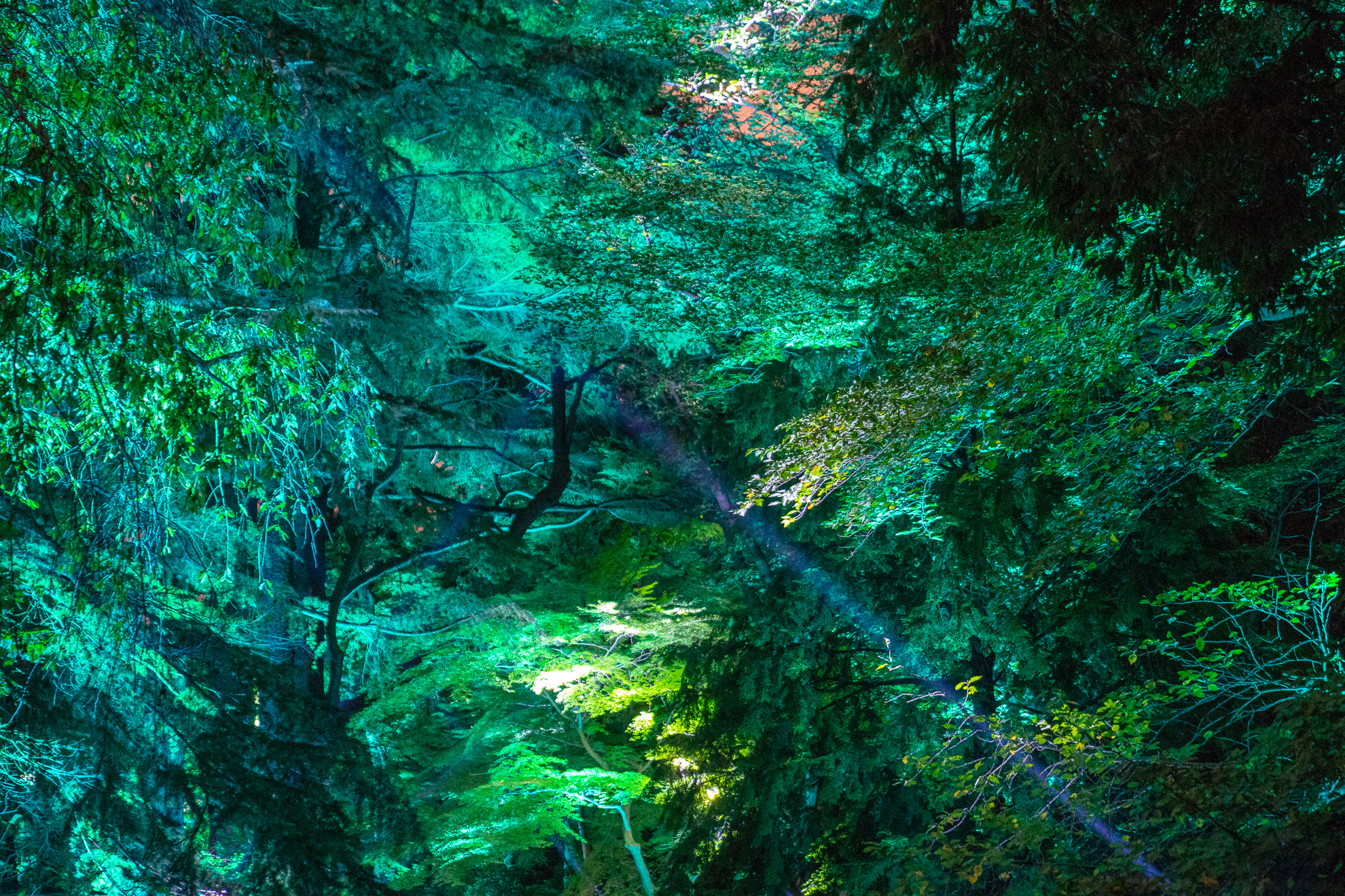 赤や青のライトに照らされた森は幻想的だったのですが、緑のライトも赤や青に負けない幻想感があったのが印象深かったです。