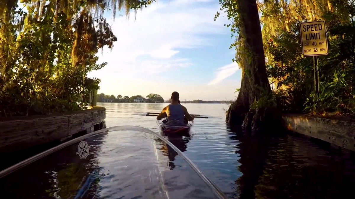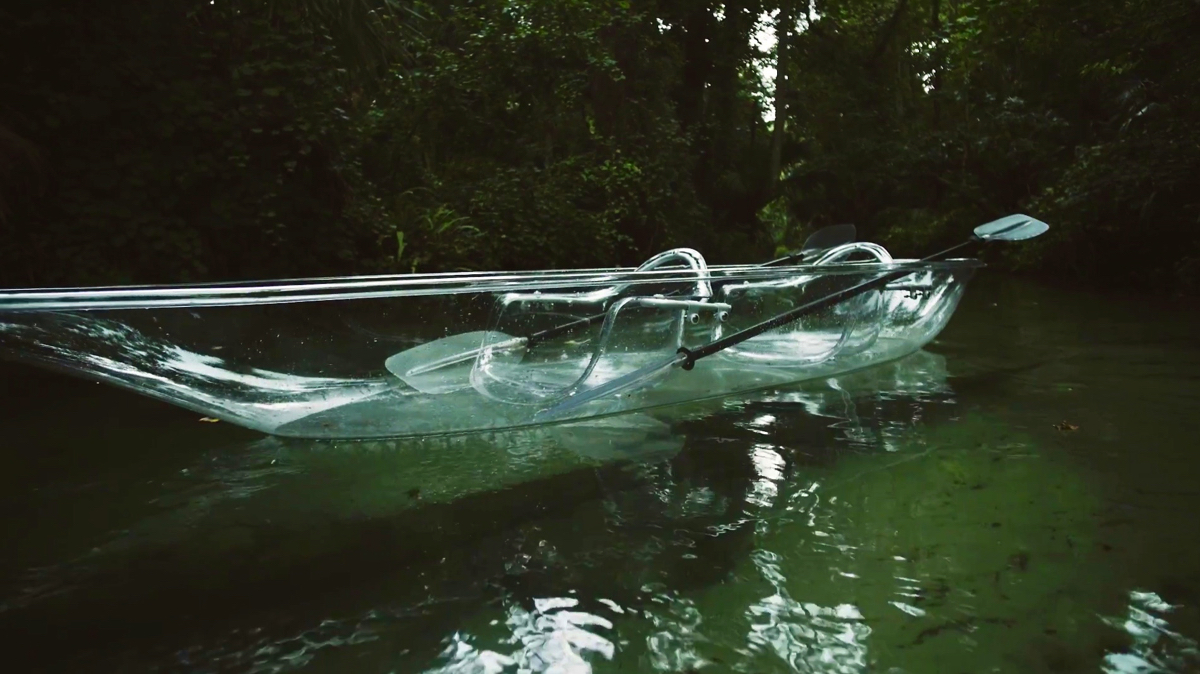 船体がすべて透明で、まるで水上を浮遊しているかのような経験ができる、フロリダを拠点に活動するGet Up and Go Kayaking社の透明なカヤック。