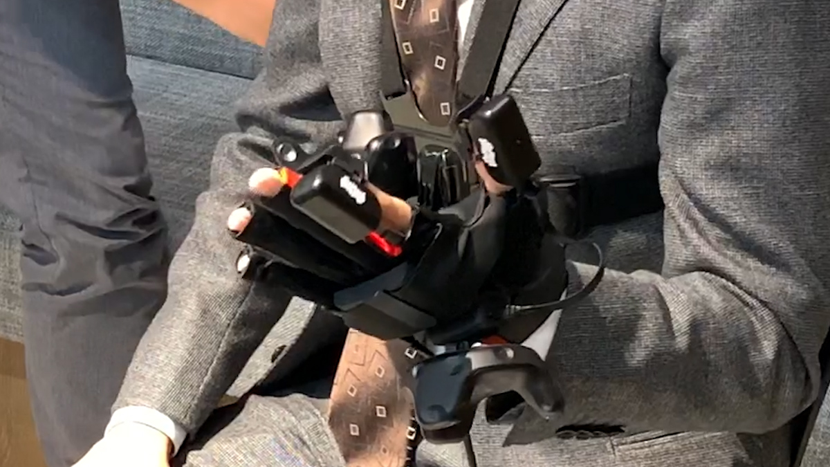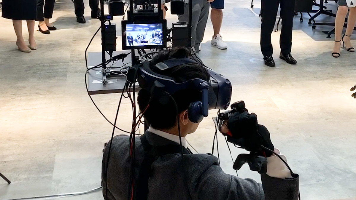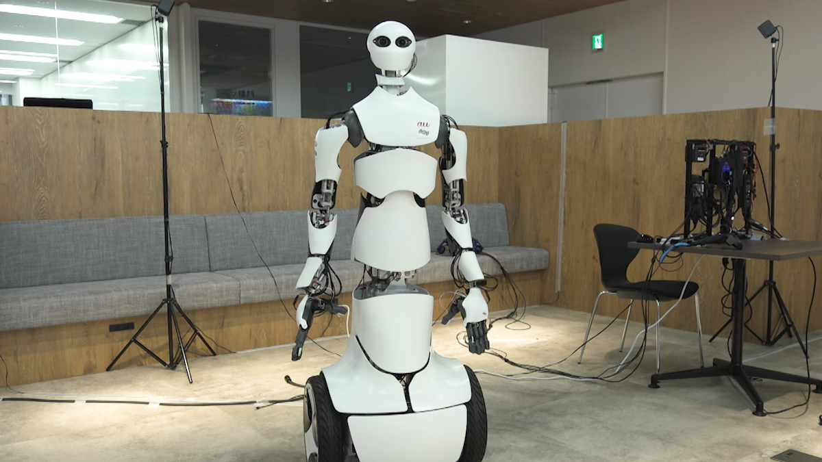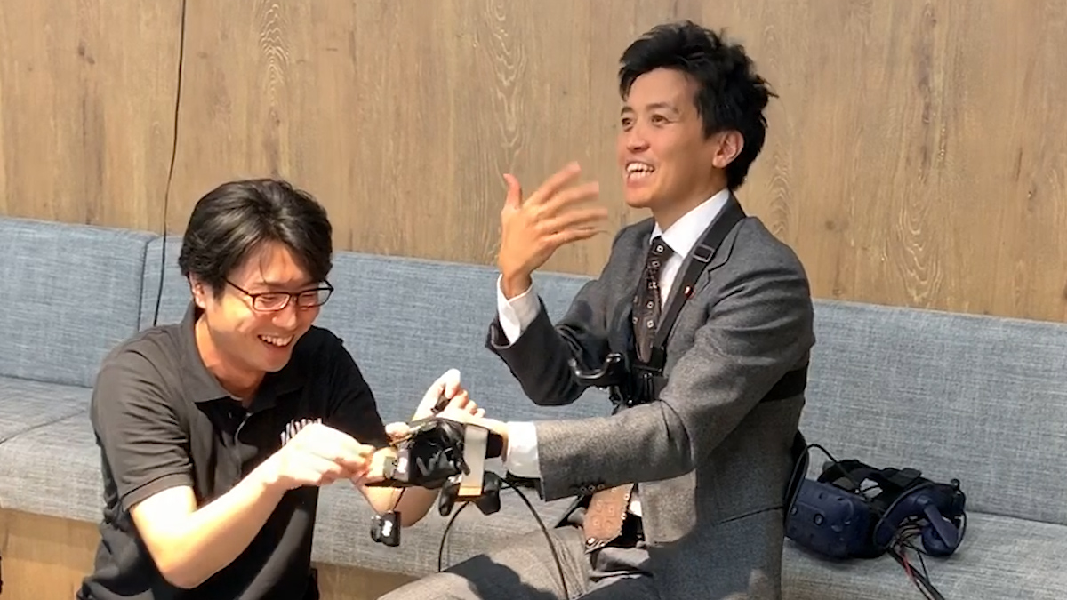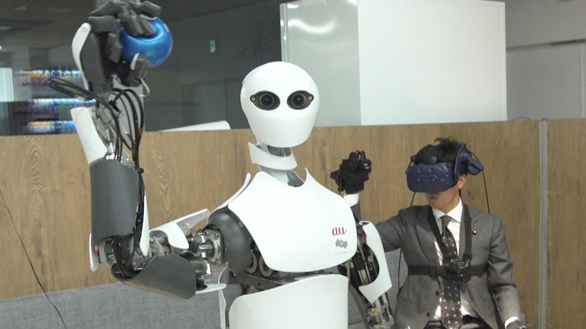 人型のロボットは量産試作機。このロボットに憑依するため、人は触感が得られるグローブとVRゴーグルを装着します。ロボットが何かをつかむとそれに応じ、グローブにはつかんだ感覚が届きます。VRゴーグルでロボットの視線となるため、まるで自分がロボットになったかのような不思議な感覚に。