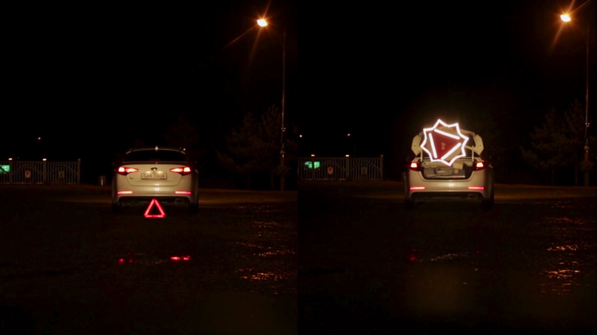 従来の小さな三角停止表示板よりも、7倍大きく7倍明るい「PULLi」。高速道路を走行中のときの緊急事態などを、もっと安全に乗り切ることができそうだ。