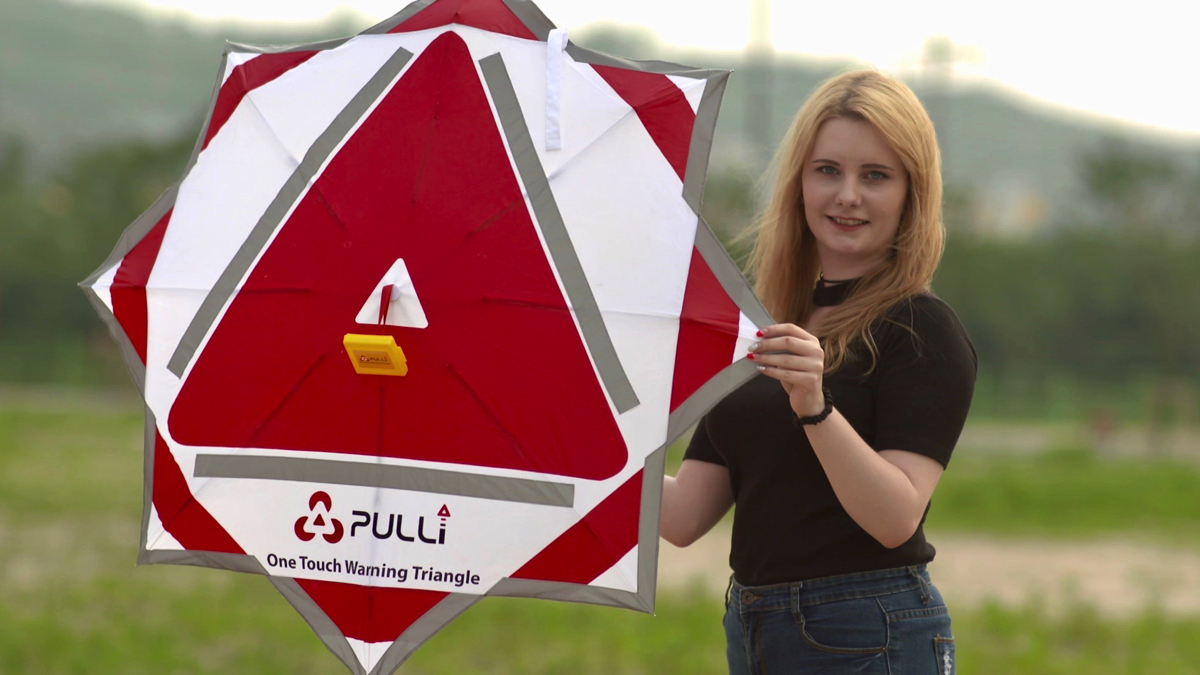 7倍大きくて明るい! 緊急時をもっと安全に乗り切れる傘型三角停止表示板「PULLi」