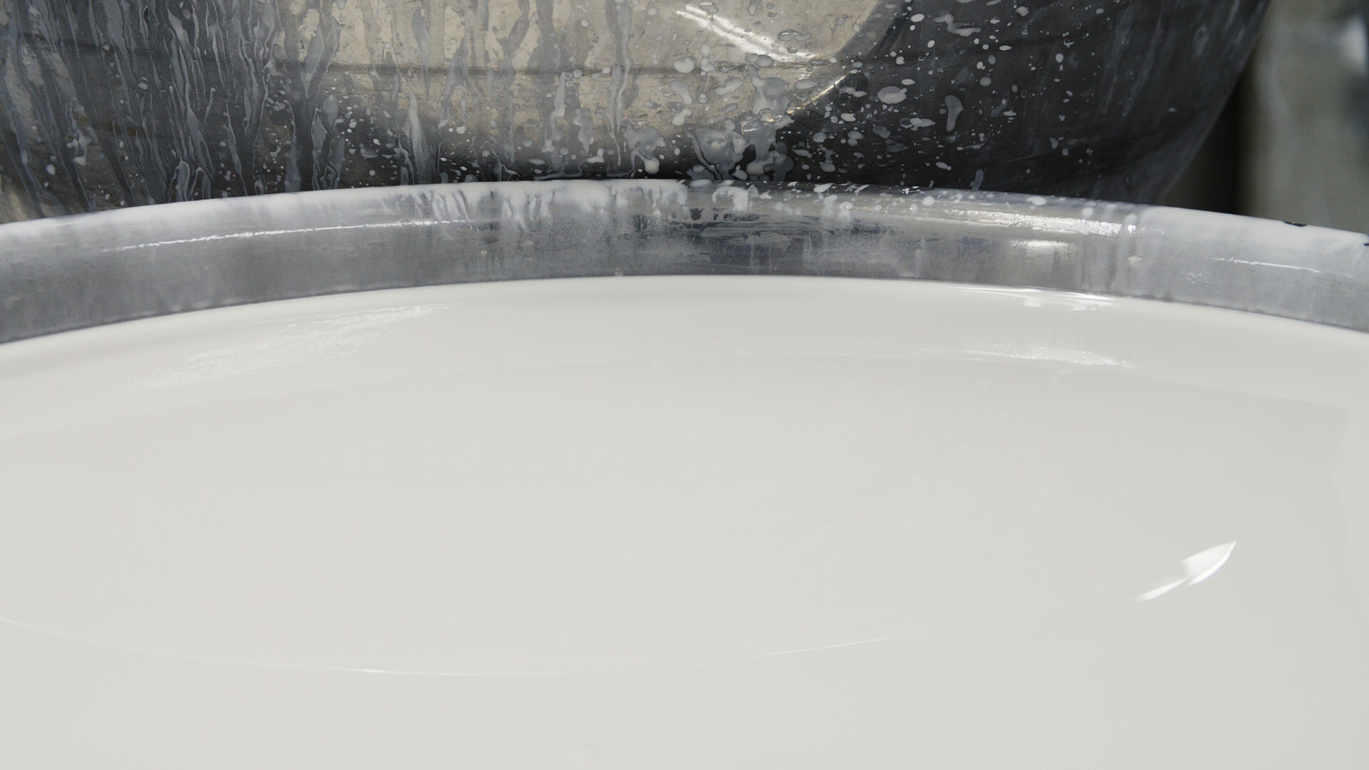 ボウルに溜められているのは釉薬(ゆうやく)とよばれる薬品で、釉薬をつけて焼成することで器の表面をコーティングしたり、光沢を出したりすることができます。