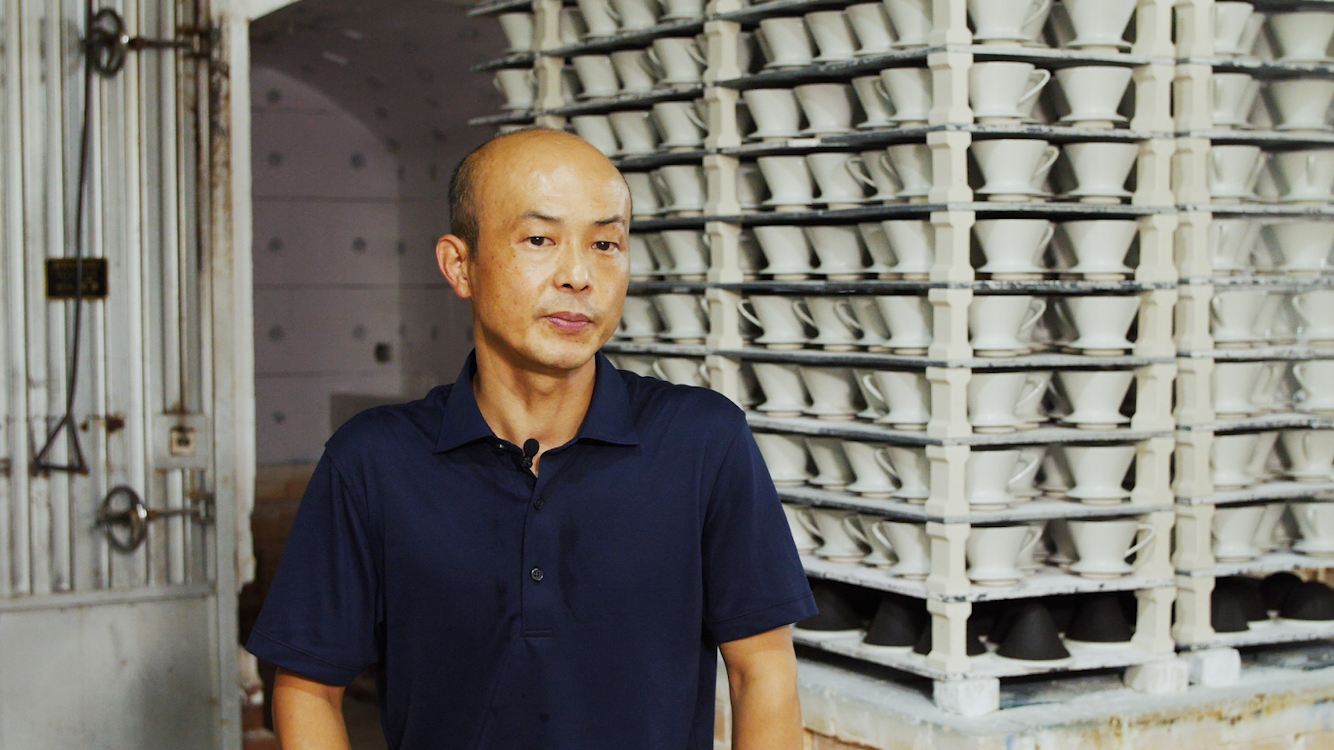 ドリッパーの溝にたまってしまった釉薬を、水で洗い流す。いわば逆転の発想で、ドリッパーの美しい白と質感が、生まれていました。ドリッパーの美しさには、有田焼の技術の粋が結集されていました。